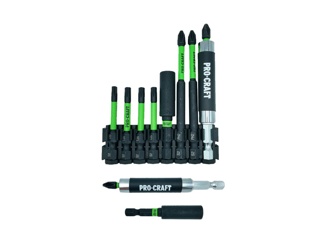12 ks 50mm bitů: Phillips: PH2x2, Pozi: PZ2x2, Torx: T15x2, T20x3, T25x3