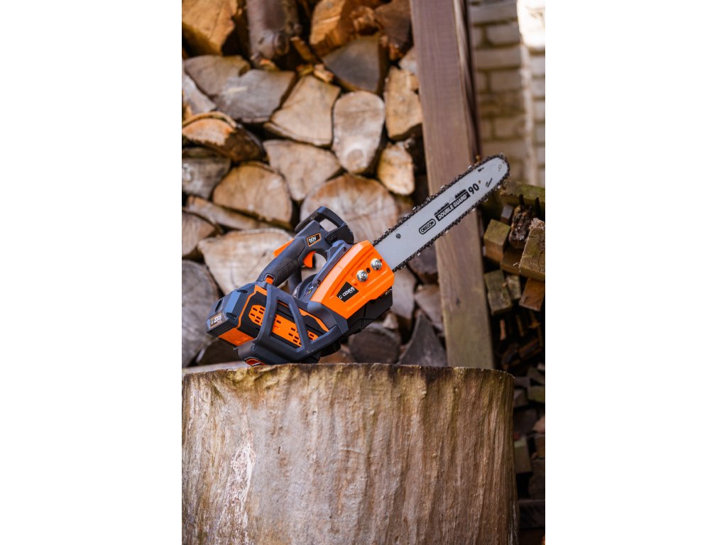 - Nízká hmotnost 2 kg (bez akumulátoru) usnadňuje manipulaci i při delším používání, čímž je pila ideálním nástrojem pro práci na zahradě, údržbu stromů či přípravu palivového dřeva.