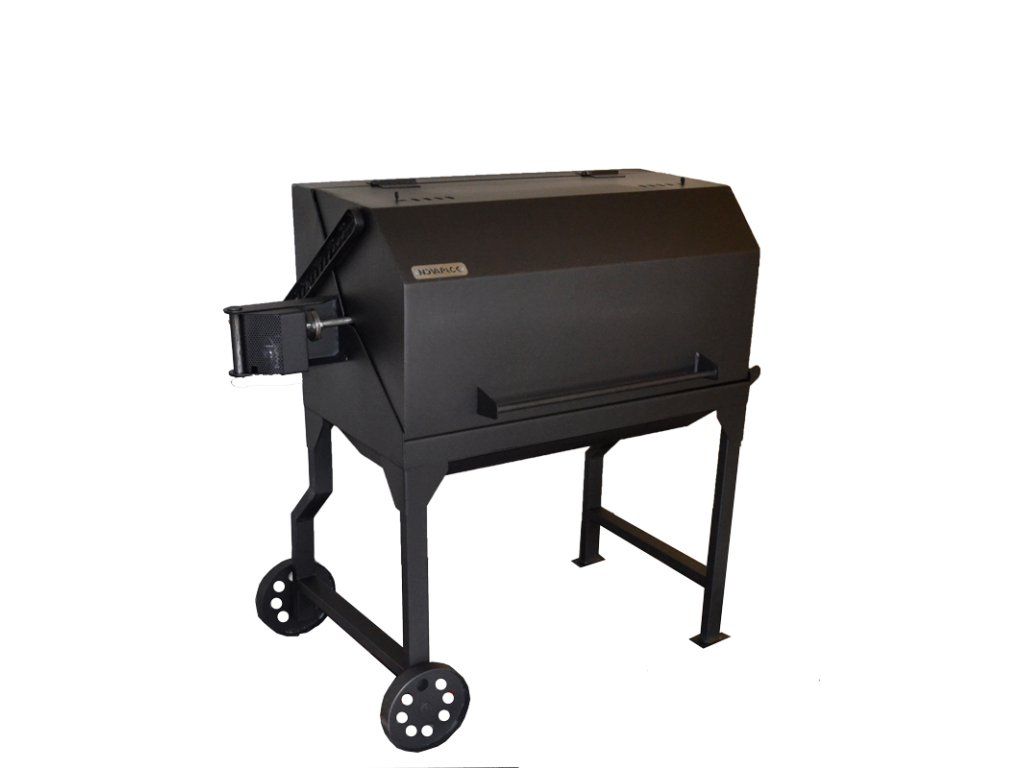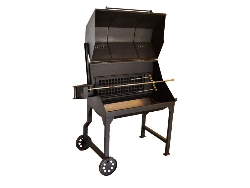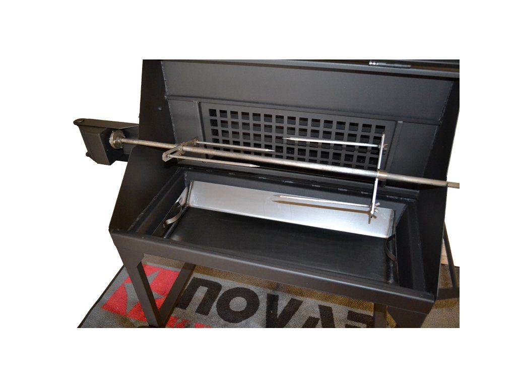Gril je jedinečný uložením topeniště v zadní stěně, které je možné pro lepší manipulaci, nebo čištění vytočit. Do grilu se vejde až 6 kuřat, nebo vepřová kýta, takže je vhodný na menší, ale i na větší společenské akce. Grilovací jehlu která je místěna na zadním pantu lze při ořezu masa vyklonit, je ale potřeba jehlu na jedné straně držet. Na grilu je místěn vypínač, který zajišťuje elektrický pohon na otáčení jehly