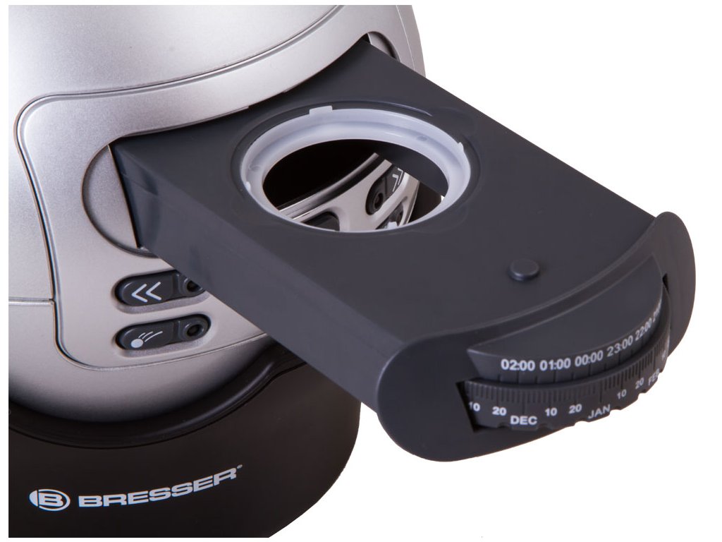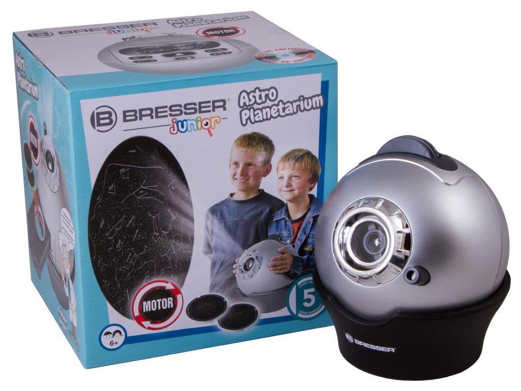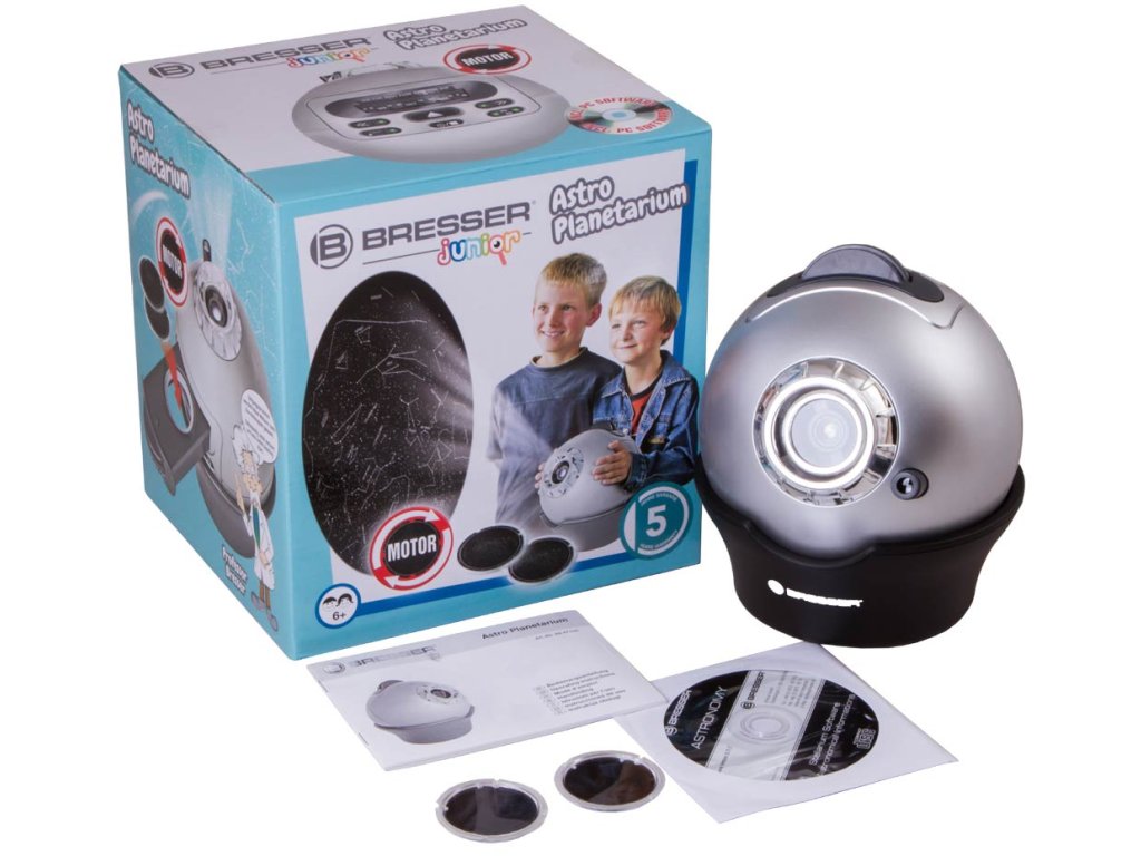 Tento model je mezi zákazníky velmi oblíbený. Astroplanetárium Bresser Junior se mimořádně snadno ovládá – prostě jej namíříte na světlý povrch jednotné barvy (například na strop), nastavíte požadovaný čas a zařízení zapnete.