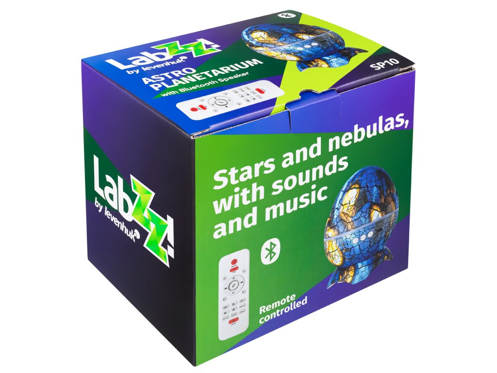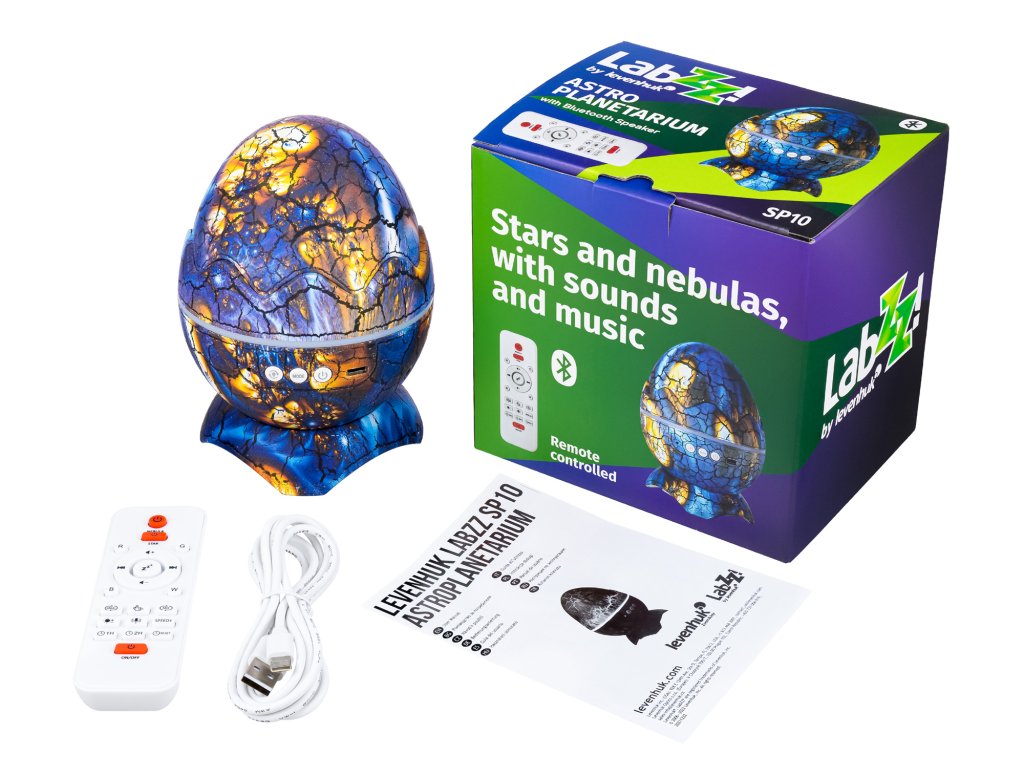 Astroplanetárium Levenhuk LabZZ SP10 je projektor vesmíru, který zahrnuje jedinečný design a bohaté multimediální funkce. Díky tomuto zařízení si můžete užívat pohled na vesmír, který se zobrazí na zdech a zároveň poslouchat oblíbenou hudbu pomocí vestavěného reproduktoru. Toto zařízení si oblíbí jak děti, tak i dospělí. Okoření jakýkoliv interiér a pobaví hosty na večírku. V noci astroplanetárium vytvoří jedinečnou atmosféru, která je dokonalá pro relaxaci. K dispozici je také režim bílého šumu, který poskytuje lepší kvalitu spánku a obnovení energie.