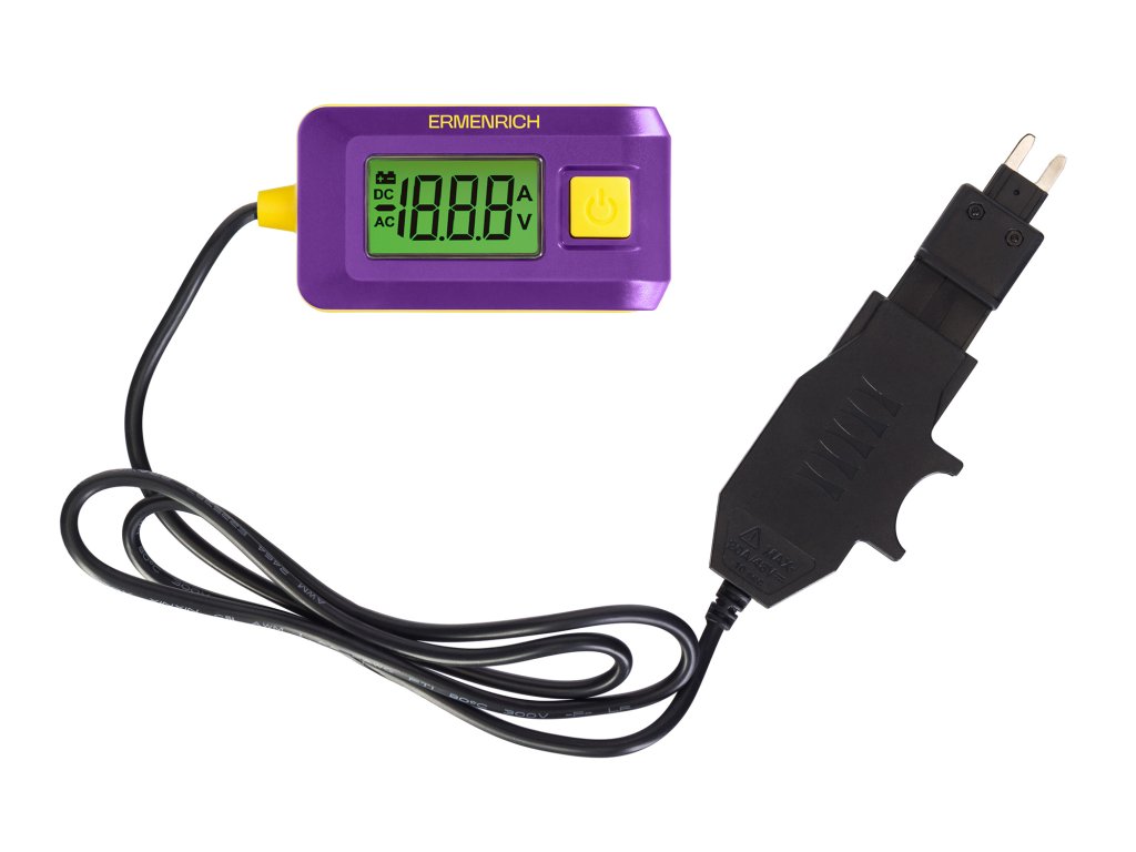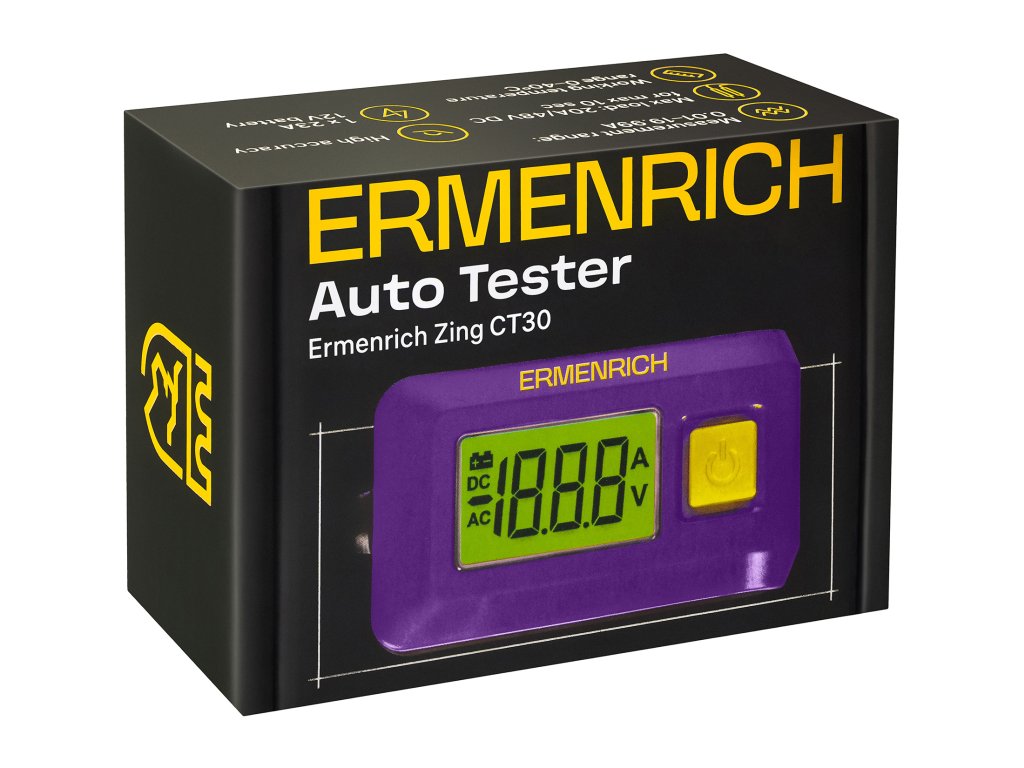 Ermenrich Zing CT30 je automatický tester, který měří množství proudu v elektrickém obvodu. Přístroj je třeba nainstalovat namísto pojistky vozidla a pojistka musí být vložena do pojistkové zdířky, aby chránila obvod. Měření je rychlé a přesné a zjištění úniku proudu je celkem jednoduché.