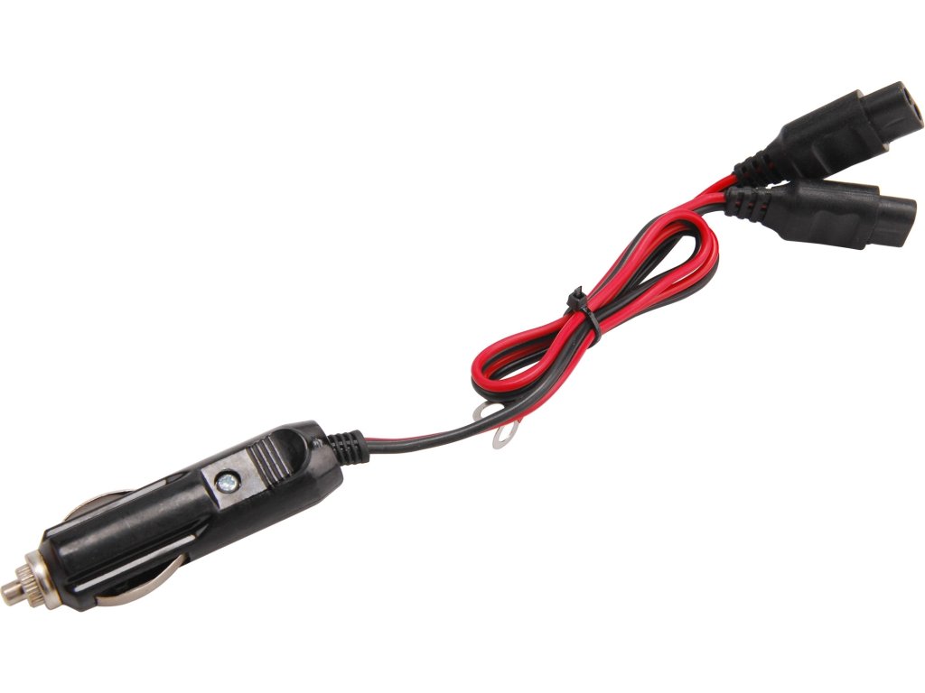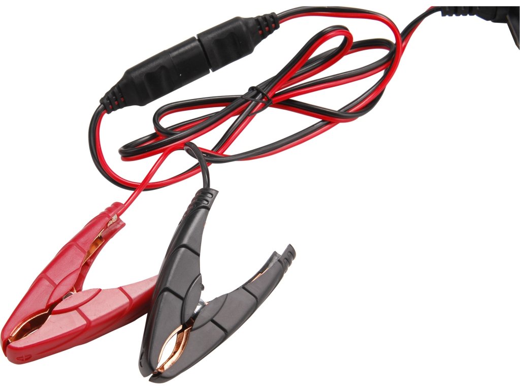 - vybaveno třemi typy koncovek pro připojení baterie: svorky, cigaretový zapalovač a očka