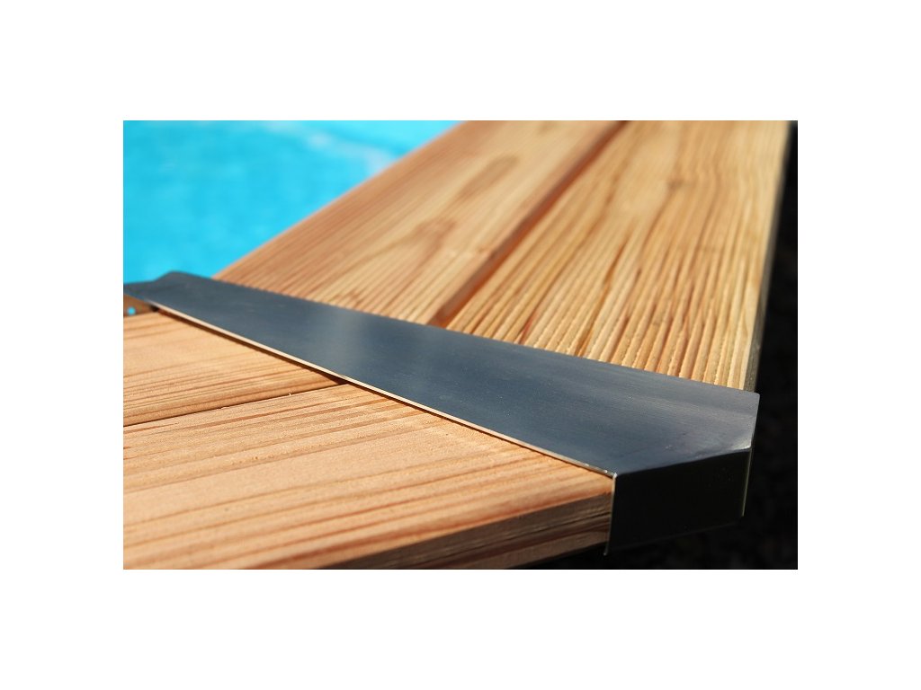 Zaplavat si v chladivé vodě, odpočinout na lehátku a příjemné chvilky zapít lahodným koktejlem. Pro většinu z nás to zní jako perfektní letní den. A takový den můžete prožít i ve vlastní zahradě. S našimi osmiúhelníkovými bazény se tyto vaše sny stanou reálnou skutečností. Díky svým velkorysým rozměrům 400 x 400 cm (model 1) nebo 470 x 470 cm (model 2) nabízí bazén zábavu a hry pro celou rodinu. Osmiúhelníkový bazén má objem pro cca 11 300 / 16 800 litrů vody a výšku hladiny max. 111 cm. Vnější dřevěný žebřík ze severského smrku a žebřík z nerezové oceli vám usnadní vstup do chladné vody (obojí je obsahem základního balení). Tato verze bazénu PREMIUM má horní pohledové lišty vyrobené z luxusního dřeva borovice douglesky a spojené plechovými spojkami z nerezové oceli.