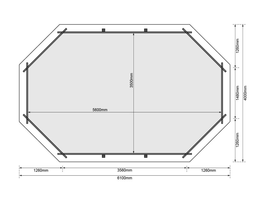 - vnitřní rozměry bazénu: 350 x 560 cm