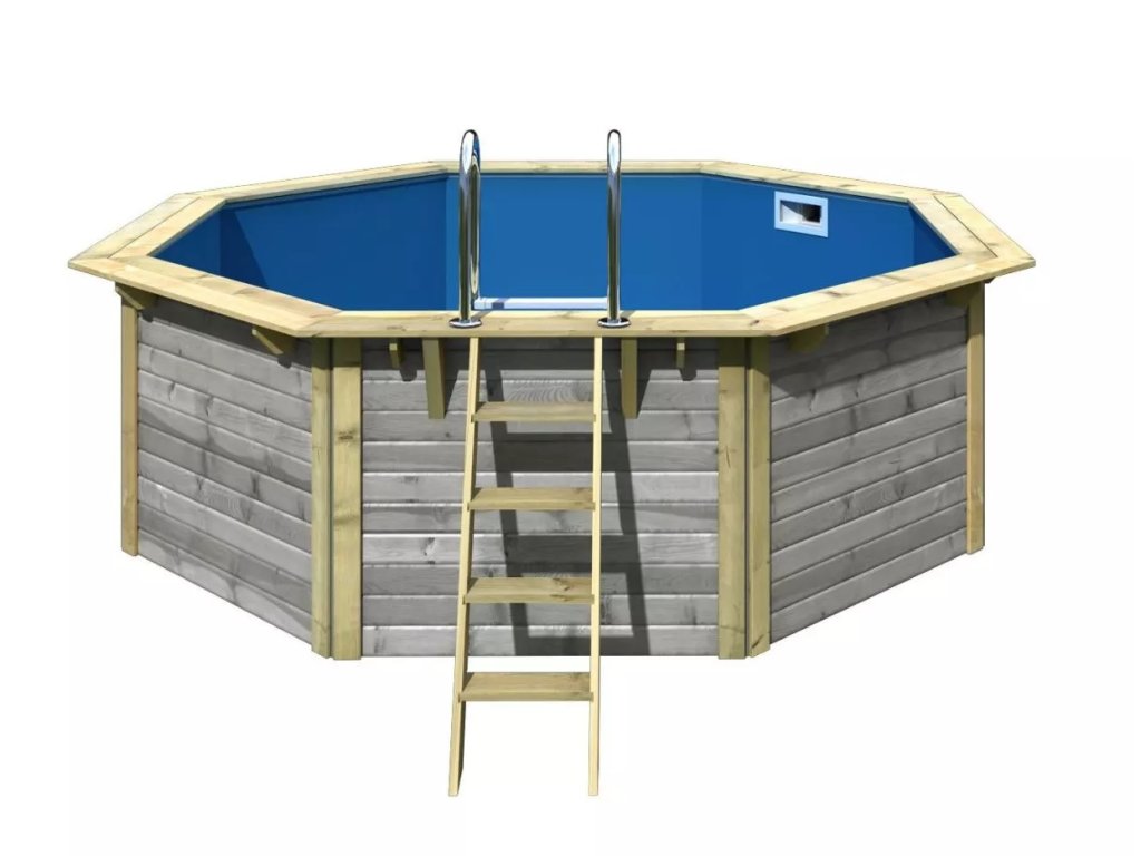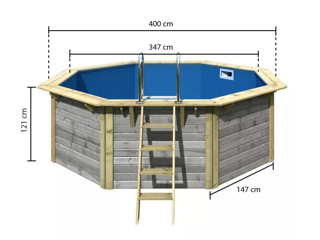 Zaplavat si v chladivé vodě, odpočinout na lehátku a příjemné chvilky zapít lahodným koktejlem. Pro většinu z nás to zní jako perfektní letní den. A takový den můžete prožít i ve vlastní zahradě. S našimi bazény se tyto vaše sny stanou reálnou skutečností. Bazén má objem pro cca 11 000 litrů vody a výšku hladiny max. 109 cm. Vnější dřevěný žebřík ze severského smrku a žebřík z nerezové oceli vám usnadní vstup do chladné vody (obojí je obsahem základního balení).