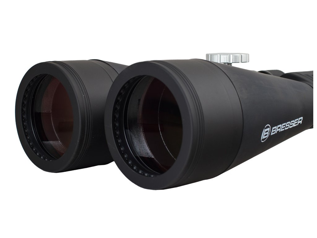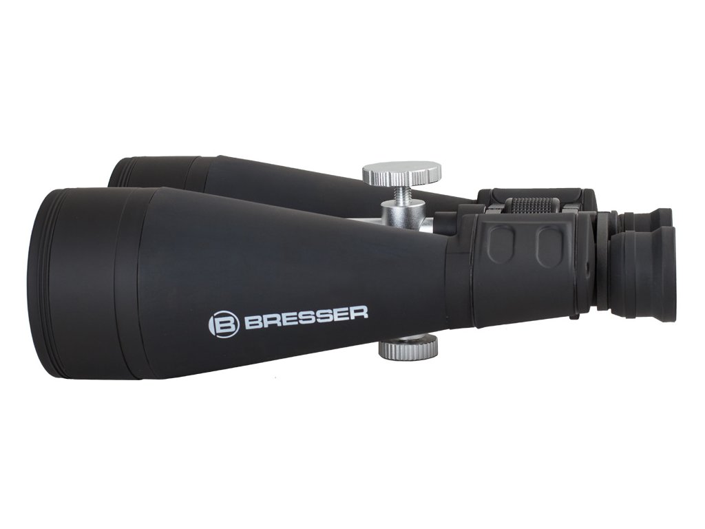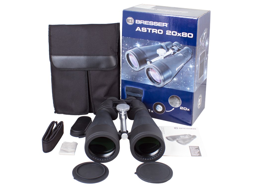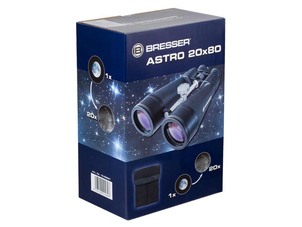 Bresser Astro 20x80 – binokulární dalekohled s Porro hranoly a špičkovou optikou ze skla BaK-4 s vícevrstvou úpravou vytváří jasný a ostrý obraz s dokonalou barevností. K zaměřování objektů slouží centrální zaostřovací kolečko; dalekohled je dále vybaven mechanismem dioptrické korekce. Pryžové opláštění chrání triedr před vlhkostí a prachem a zajišťuje spolehlivý a pevný úchop při pozorování.