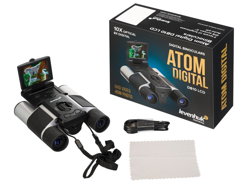Levenhuk Atom Digital DB10 LCD je kompaktní přístroj s vestavěným 2palcovým LCD displejem a videorekordérem určený k prohlížení a pořizování fotografií a videí během dne. Dobře se osvědčí při lovu, sportu, ornitologických výpravách nebo kempování. Milovníci přírody ocení funkčnost tohoto binokulárního dalekohledu: krajinu a faunu lze zaznamenávat ve formátu fotografie a videa se zvukem, přičemž proces fotografování lze ovládat přímo na obrazovce.