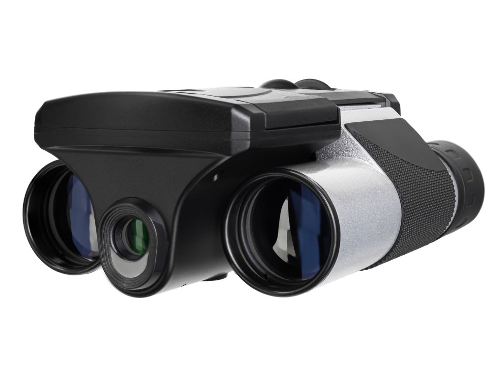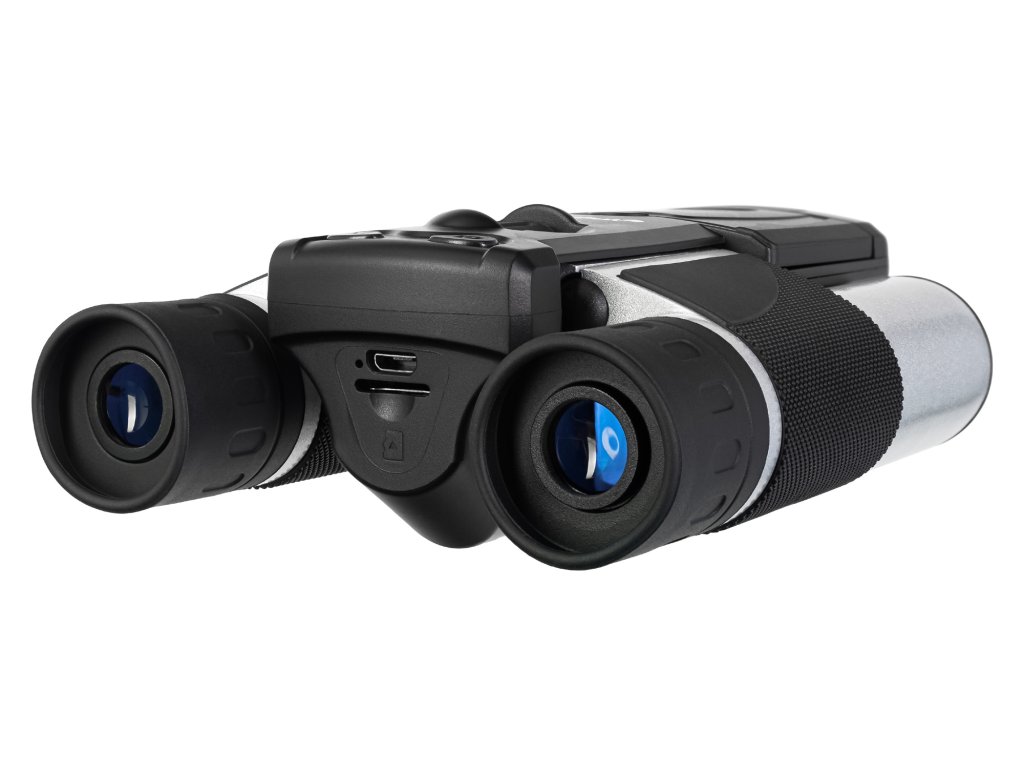Optika binokulárního dalekohledu umožňuje pozorovat vzdálené objekty při 10x zvětšení; k dispozici je také digitální zoom až s 8x zvětšením. Inteligentní design s uzavřeným můstkem je doplněn výklopným 2palcovým LCD displejem, který vytváří vysoce kvalitní obraz tvořený snímačem CMOS. Zaostřovací kolečko umístěné v těle v blízkosti čoček objektivu umožňuje rychlé a snadné zaostření obou čoček objektivů. Můžete zaostřit na cíle v rozsahu 10–1000 m.