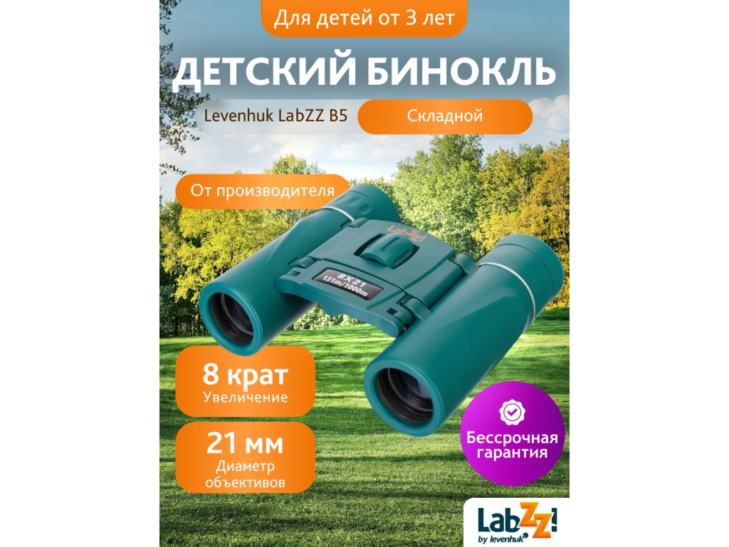 Levenhuk LabZZ B5 – binokulární dalekohled je speciálně navržen pro zvídavé děti, které s nadšením poznávají svět kolem sebe. S tímto kompaktním binokulárním dalekohledem kapesní velikosti mohou děti poznávat své okolí při cestování, návštěvě zoologické zahrady nebo při každodenních procházkách po okolí. Při 8x zvětšení lze pozorovat jakýkoliv objekt, který vás zaujme. Optika binokulárního dalekohledu funguje nejlépe za slunečného počasí.