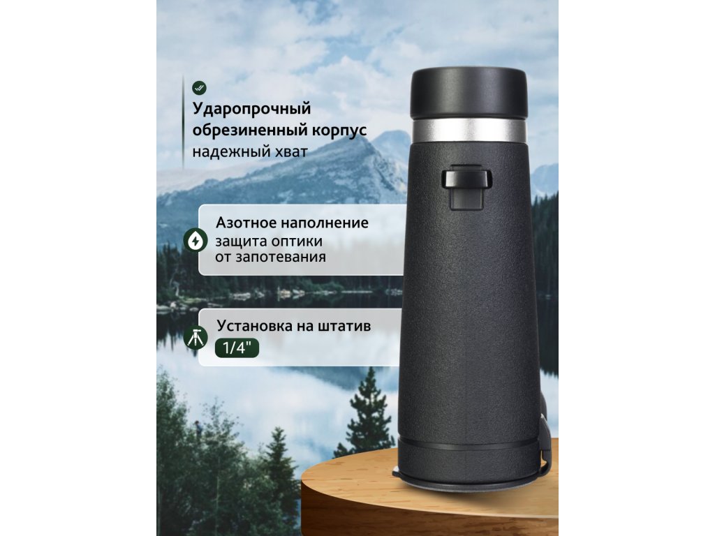 Díky vysoce odolnému plastu ABS, z něhož je vyrobeno tělo dalekohledu, je dalekohled odolný i proti nárazům. Vnější pogumování zlepšuje přilnavost a minimalizuje riziko náhodného vyklouznutí z rukou. Přístroj lze namontovat na stativ (standardní 1/4" závit).