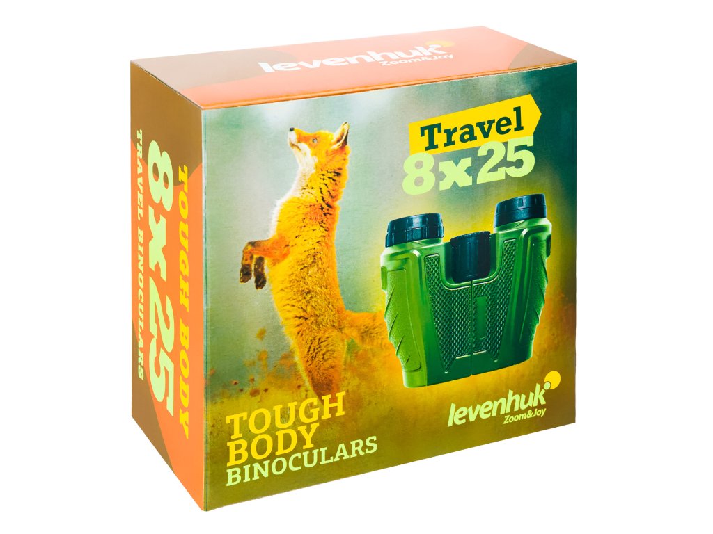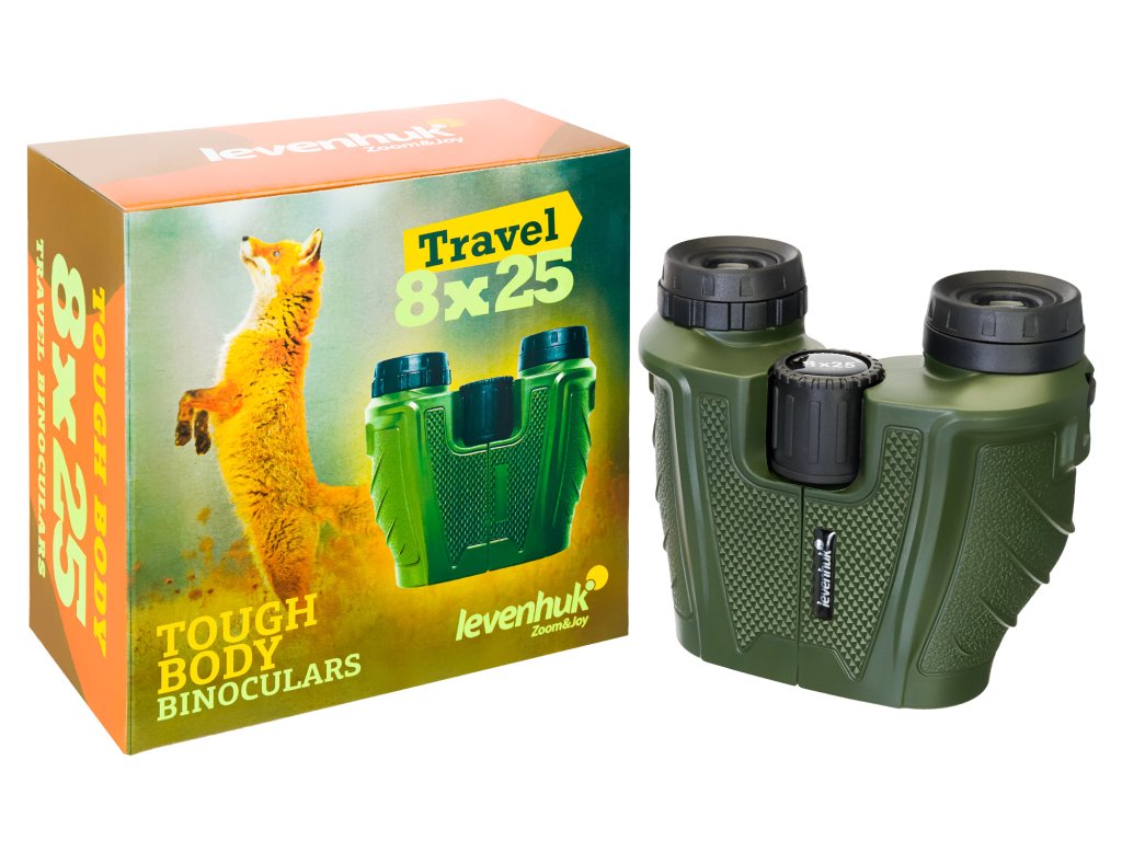 Skleněná optika BK-7 založená na Porro hranolech poskytuje jasný, dobře sytý obraz s vysokým kontrastem. K tomu napomáhají plně potažené čočky a hranoly s několikanásobnou antireflexní vrstvou na všech optických prvcích. Binokulární dalekohled Levenhuk Travel 8x25 se nastavuje pomocí centrálního zaostřovacího kolečka a kroužku pro nastavení dioptrické korekce na pravém okuláru. Můžete nastavit optimální polohu twist-up očnic a upravit mezipupilární vzdálenost. Tělo vyrobené z ABS plastu chrání přístroj proti poškození a díky texturovanému povrchu se pohodlně drží.