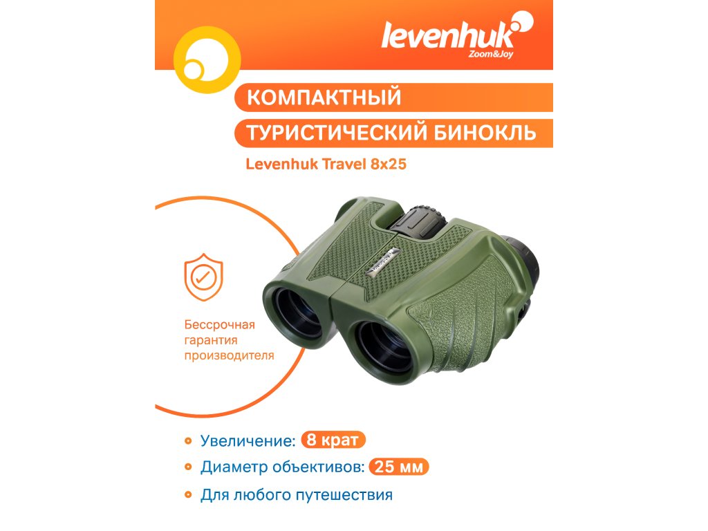 Binokulární dalekohled Levenhuk Travel 8x25 je kompaktní optický přístroj pro venkovní a městské pozorování. Bude vás provázet na každé cestě a umožní vám vidět více na výletě nebo sportovní akci. Díky svým malým rozměrům a nízké hmotnosti si jej můžete snadno vzít s sebou, ať se vydáte kamkoliv. Skvěle se vám bude hodit na rozhledně nebo na vyhlídkovém kole. Můžete s ním prozkoumávat přírodu a prohlížet si vzdálené objekty při 8x zvětšení.