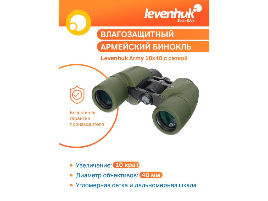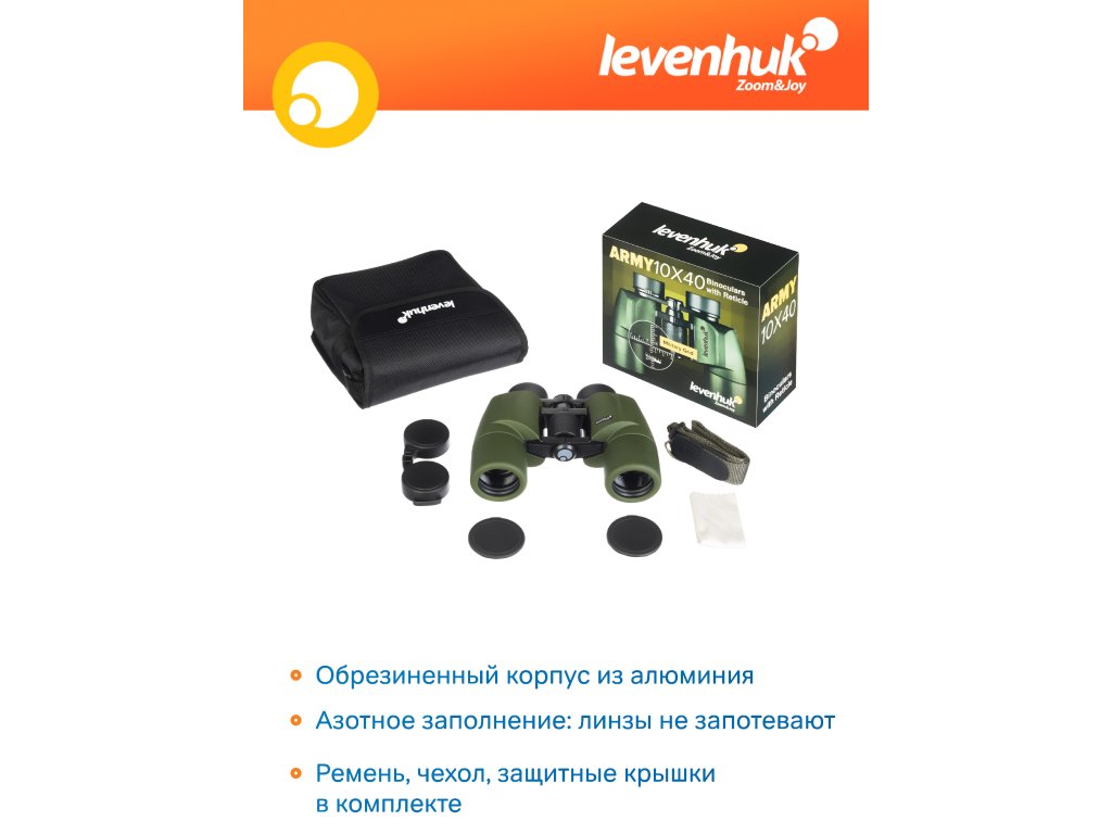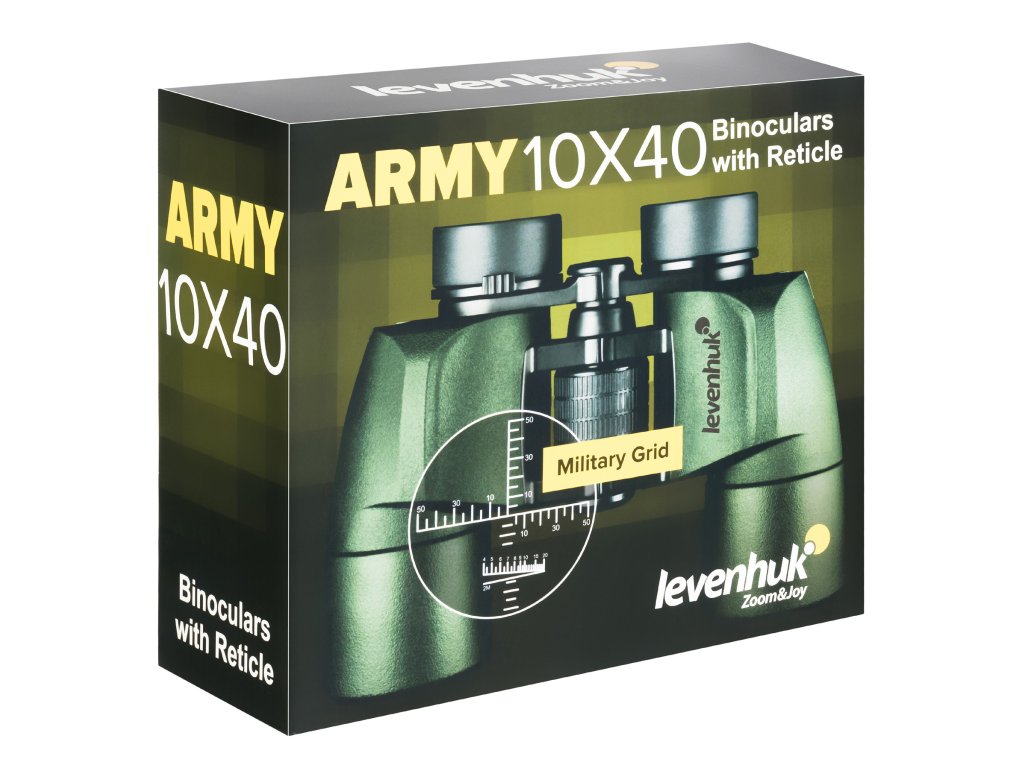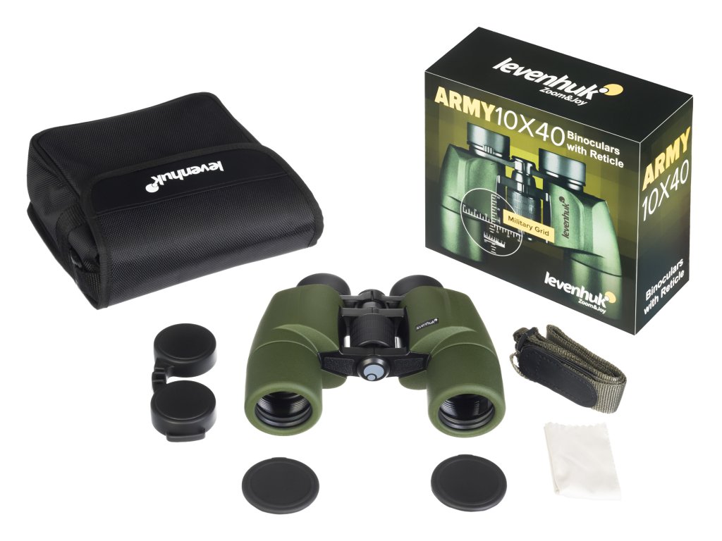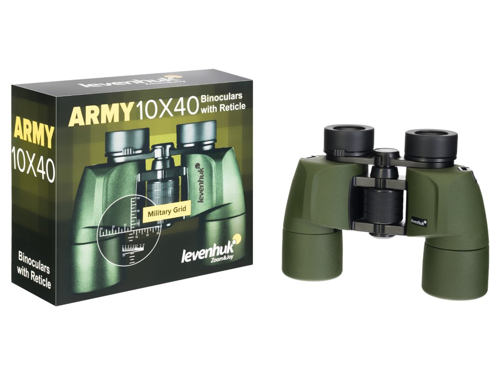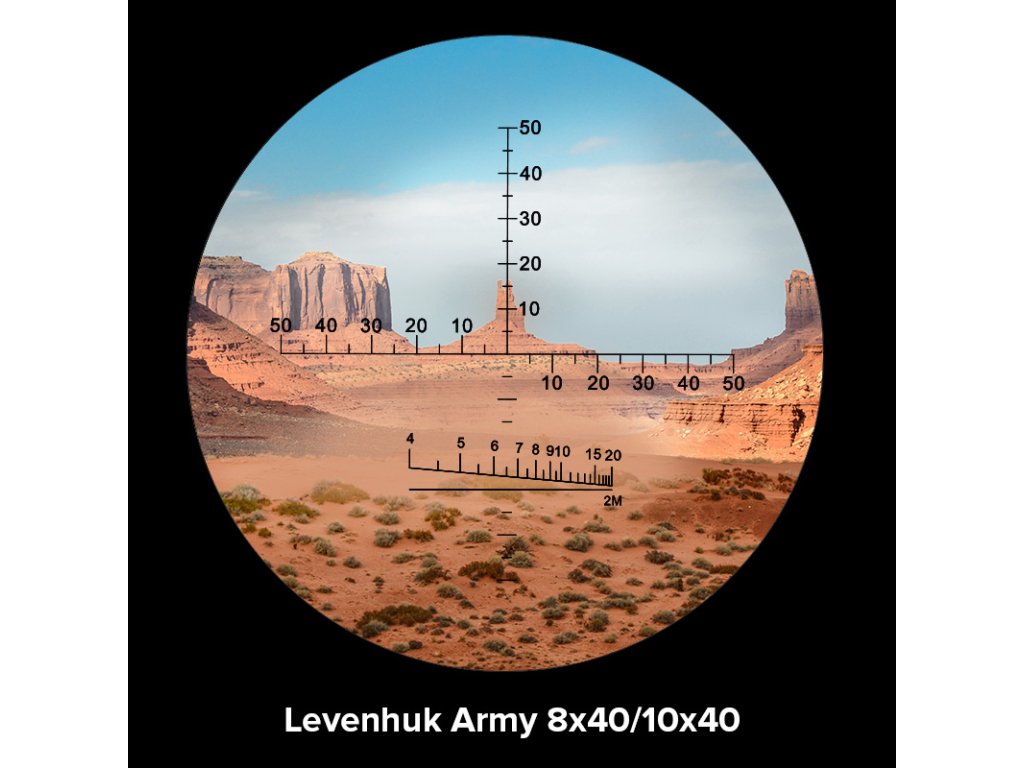 Představujeme Levenhuk Army 10x40 – polní dalekohledy s měřítkem, které se skvěle hodí pro lov, extrémní turistiku, taktické a bezpečnostní aplikace a geodézii. Přístroj disponuje až 10x zvětšením a lze jej využít k průzkumu terénu, vyhledávání vzdálených cílů, měření vzdáleností, výšek i horizontálních a vertikálních úhlů. To je možné díky rastrovému záměrnému kříži a měřítku pro měření vzdálenosti v jednom z okulárů dalekohledu.