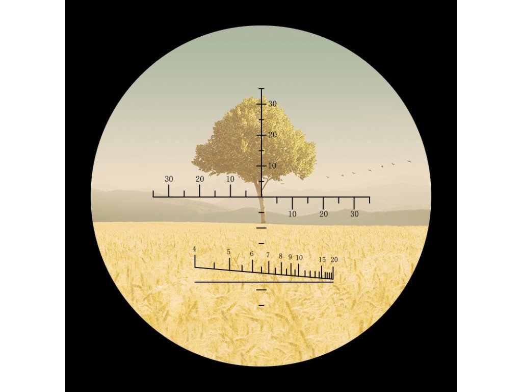 - Měřítko pro měření vzdálenosti a rastrový záměrný kříž pro měření v terénu