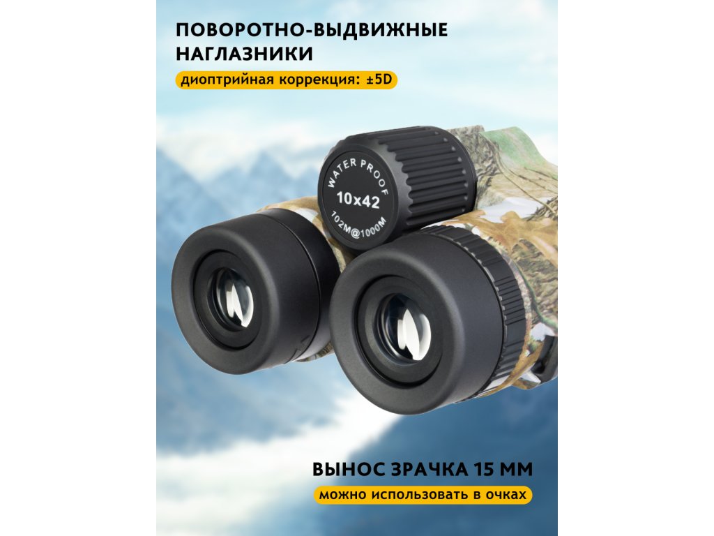Binokulární dalekohled se zaměřovačem Levenhuk Camo 10x42 je optická přístroj pro lovce, rybáře, turisty a všechny příznivce aktivního životního stylu. Tento model má vše, co může polní binokulární dalekohled nabídnout – výkonné 10x zvětšení, klasické 42mm objektivy, vodotěsné a vysoce odolné tělo v maskovacím provedení. Jeden z okulárů má navíc rastrový záměrný kříž a měřítko pro měření vzdálenosti, které umožňuje vypočítat vzdálenost k cíli, určit jeho výšku a změřit horizontální a úhel náměru. Skvělá volba pro lov!