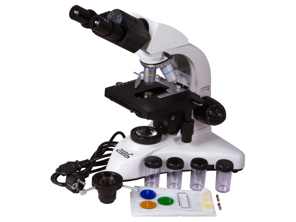 Mikroskop Levenhuk MED 25B je binokulární model se dvěma kondenzory, tj. kondenzorem jasného pole a kondenzorem tmavého pole. Oba kondenzory mohou být použity pro provádění pozorování použitím olejové imerzní metody. Tento mikroskop je určen pro profesionální práci v oblasti medicíny, mikrobiologie, biochemie a dalších vědních oborů. Lze jej využít pro výzkum, diagnostiku nebo vzdělávací aktivity. Tento mikroskop umožňuje provádět pozorování až při 1000x zvětšení, nastavení Köhlerova osvětlení a studium komplikovaných detailních mikrostruktur.