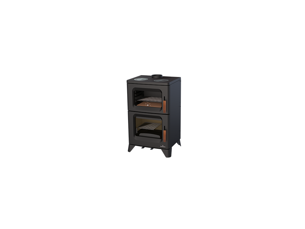 Integrovaná trouba umožňuje pohodlnou přípravu pokrmů během provozu kamen. Litinová horní deska s varnými plotýnkami je vhodná pro vaření nebo ohřev jídel.