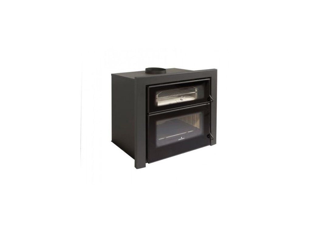 Dvouplášťová krbová vložka s troubou na pečení v moderním designu.