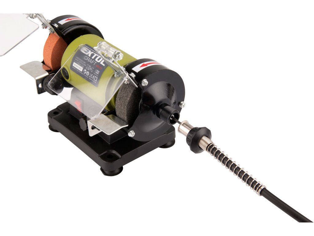 - pomocí přiloženého ohebného nástavce ji můžete používat jako přímou brusku na řezání, broušení, smirkování, leštění a rytí přesných tvarů do dřeva, plastu, kovu, skla, kamene...