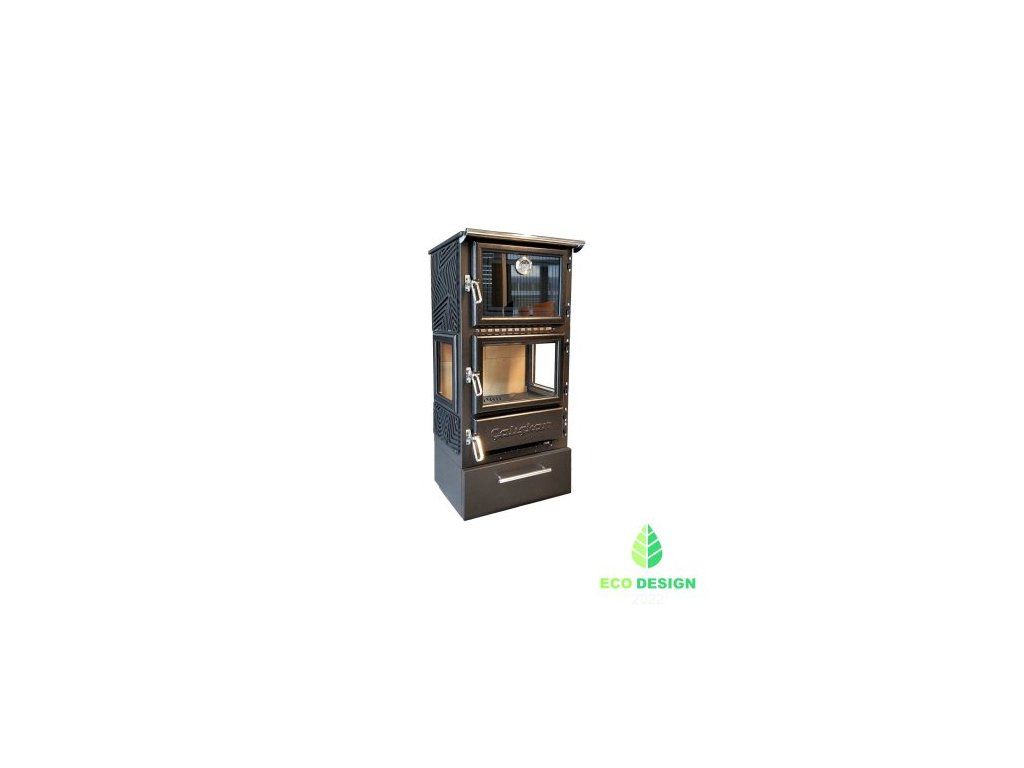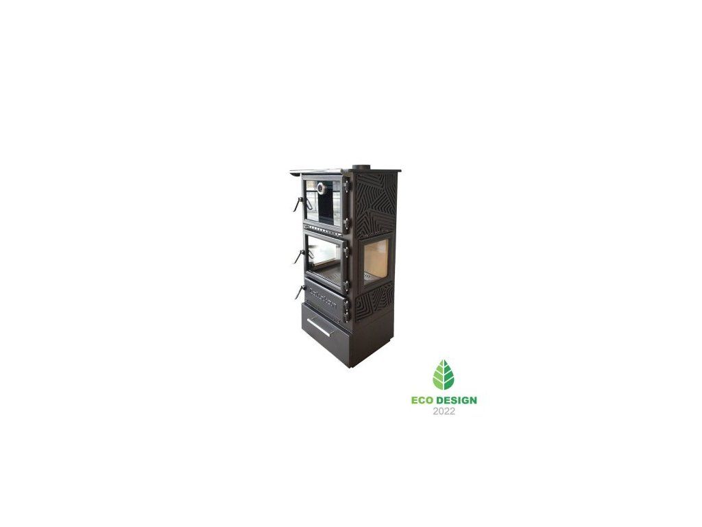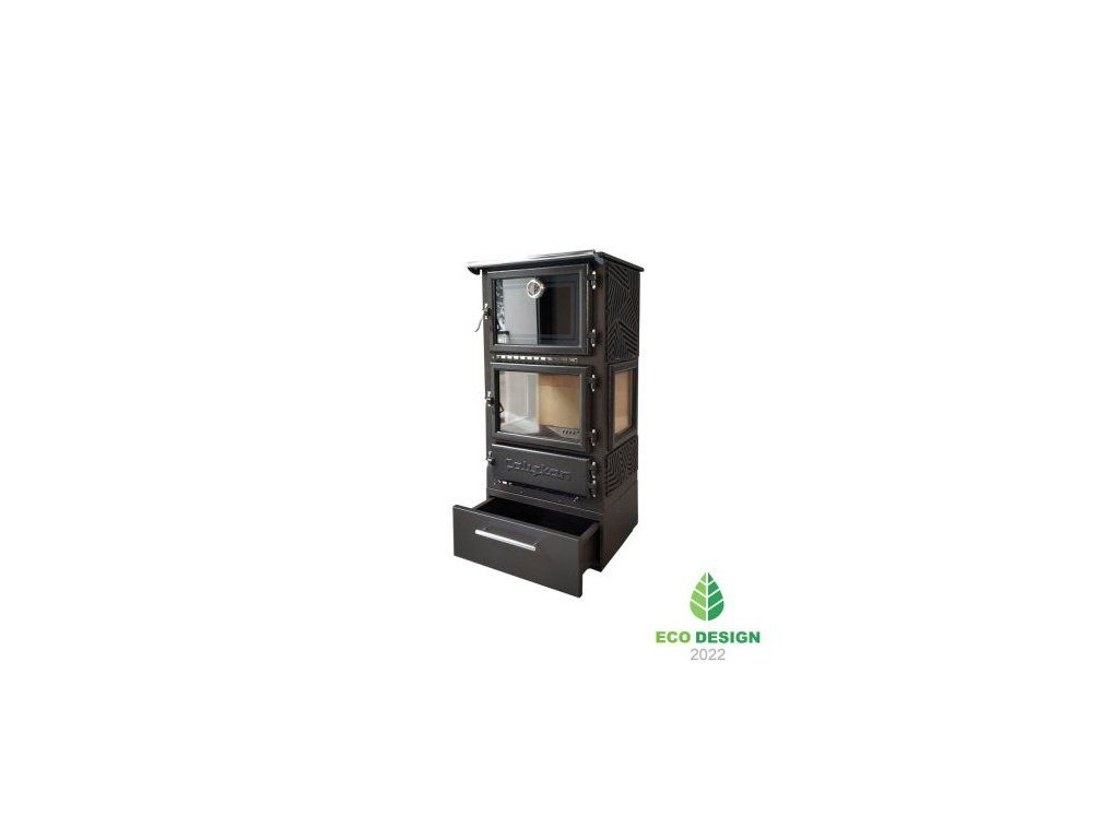 - Vysoce kvalitní litina (vrchní deska, dvířka, rám, rošt spalovací komory a nožičky)
