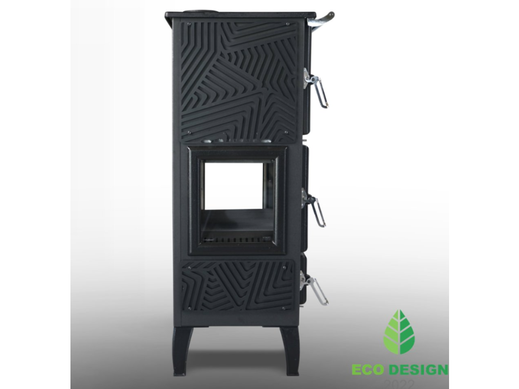 - Vysoce kvalitní litina (vrchní deska, dvířka, rám, rošt spalovací komory a nožičky)