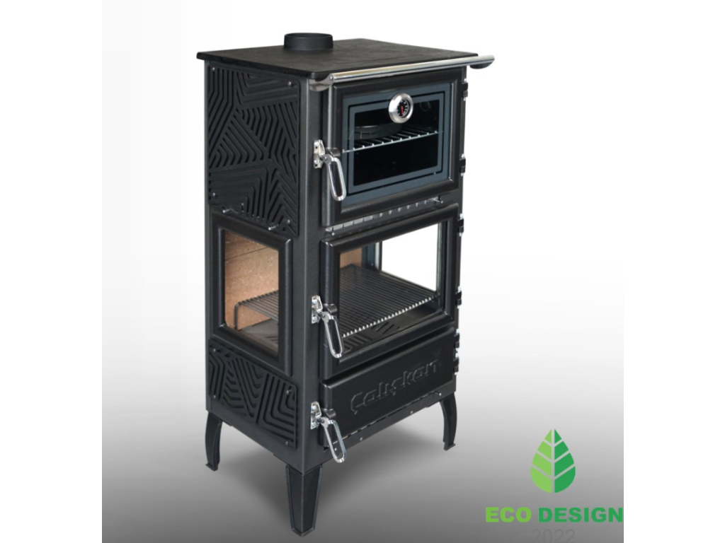 - Trouba má litinová dvířka s teploměrem a žáruvzorným sklem