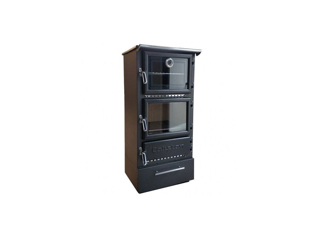 - Trouba má litinová dvířka s teploměrem a žáruvzorným sklem