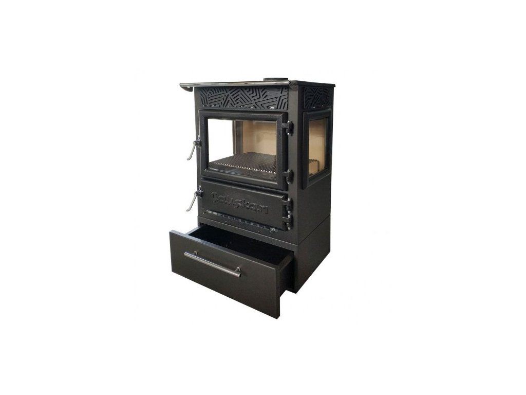 - Vysoce kvalitní litina (vrchní deska, dvířka, topeniště a nožičky)