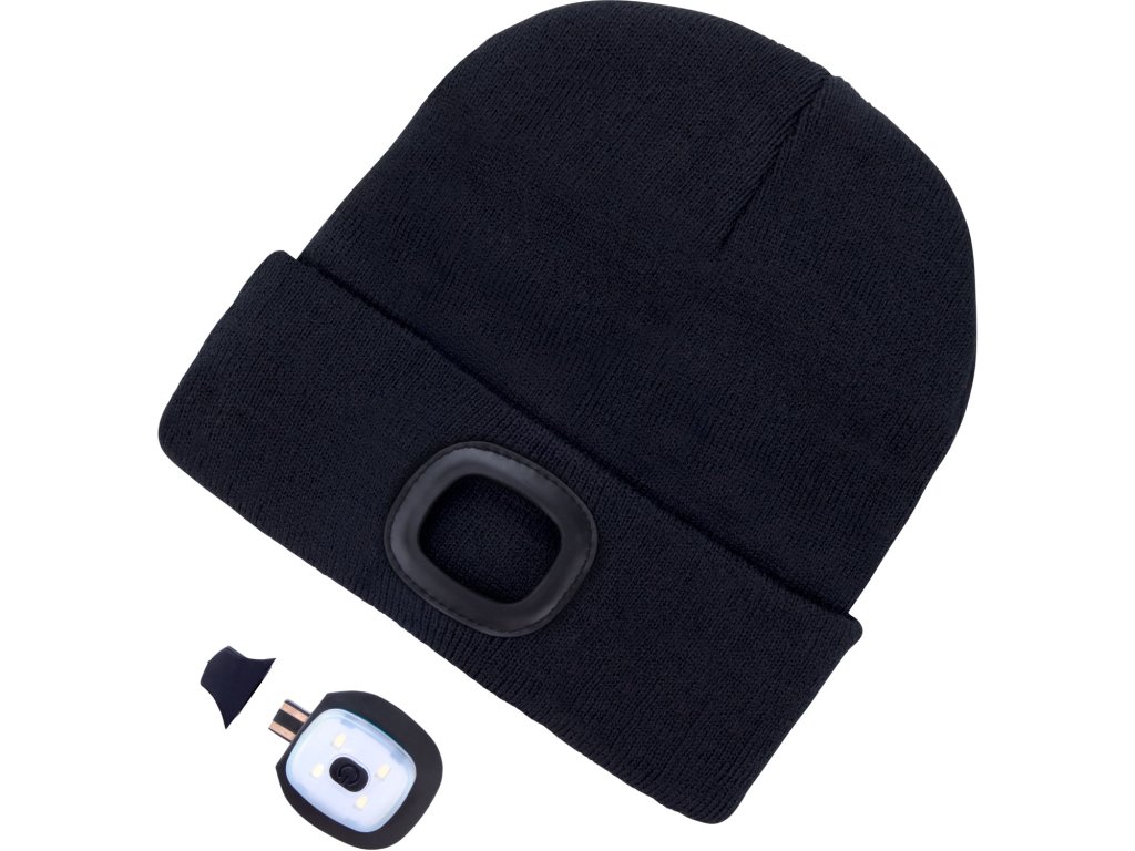 čepice s čelovkou 4x45lm, USB nabíjení, černá, univerzální velikost, 73% acryl a 27% polyester