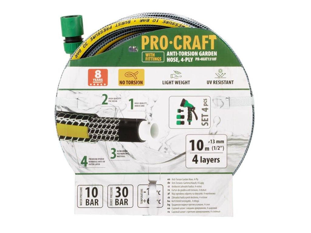 Černo-žlutá zahradní hadice Procraft PR-4KAT1310F | PR-4KAT1310F