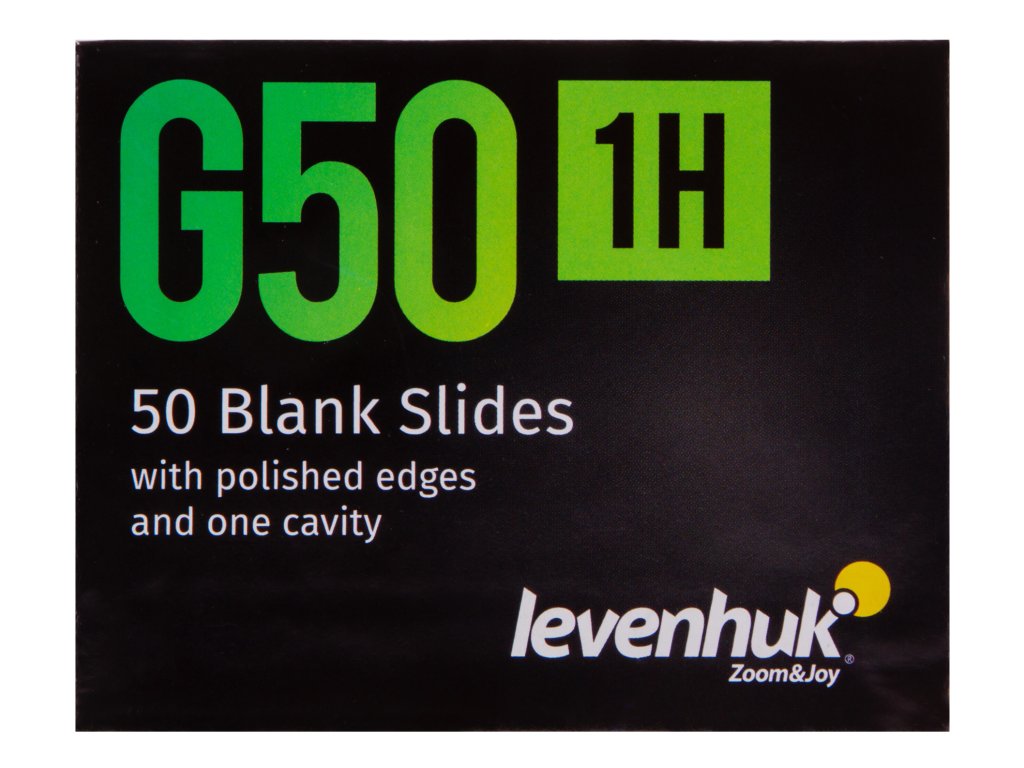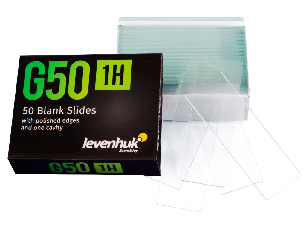 Čistá sklíčka Levenhuk G50 1H jsou opatřena dutinami. Sada obsahuje 50 čistých sklíček s vysokou průhledností. Tato sklíčka jsou určena pro zkoumání vzorků pod mikroskopem pomocí techniky zavěšování. V amatérské mikroskopii se tato sklíčka používají pro zkoumání vodních mikroorganismů, zatímco specialisté využívají pro klinický a mikrobiologický výzkum dutinová sklíčka.