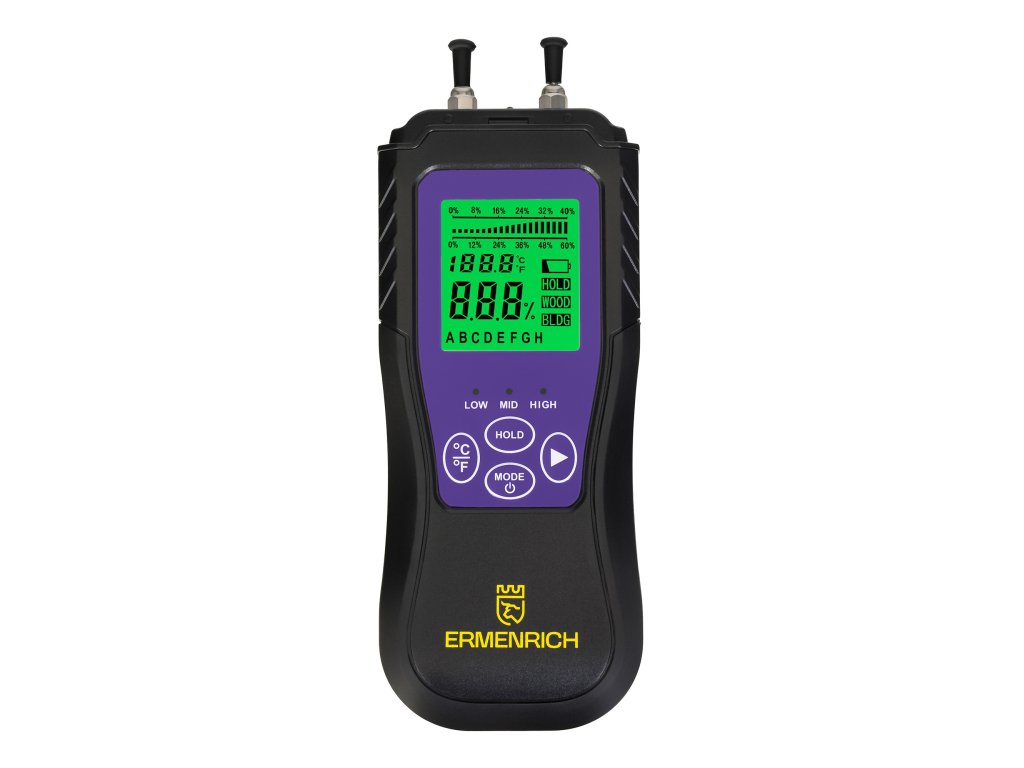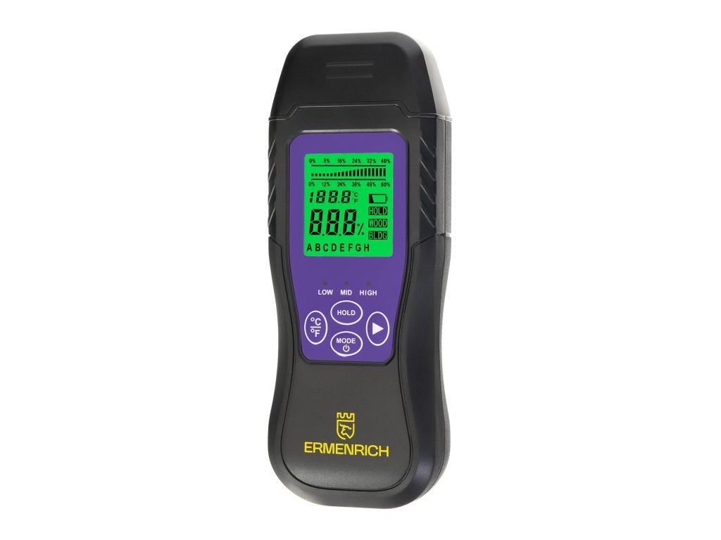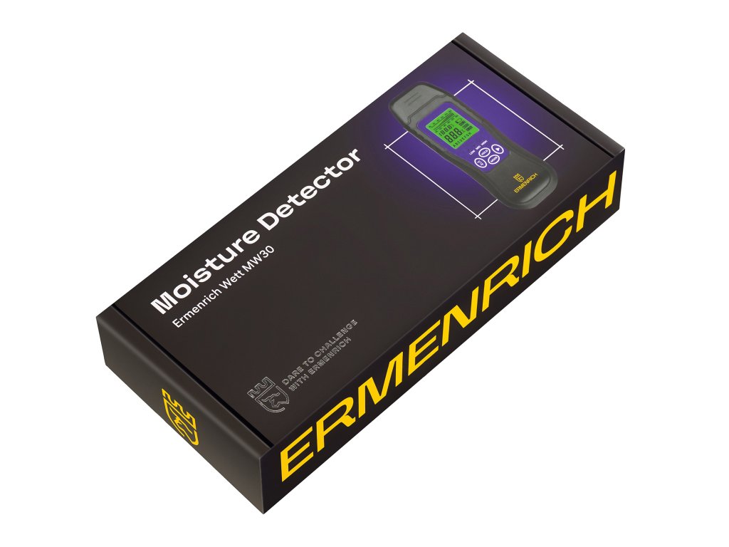 Přenosný detektor vlhkosti (vlhkoměr) Ermenrich Wett MW30 umožňuje rychlé měření vlhkosti stavebních materiálů a dřevěných výrobků. To má význam zejména při nákupu materiálu, ve výrobě, v truhlářství a při údržbě v domácnosti. Přístroj může pracovat s materiály, jako je lepenka, řezivo, beton, omítka atd. Má zabudovaný teploměr, který dokáže měřit teplotu ve dvou jednotkách měření: Celsia a Fahrenheita.
