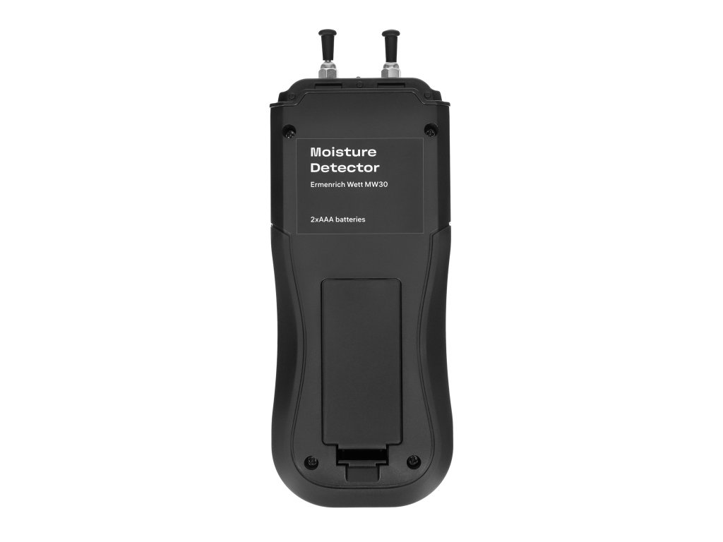 Ermenrich Wett MW30 je kolíkový detektor vlhkosti se dvěma kolíkovými senzory. Kolíky jsou ukryty pod odnímatelným krytem. Přístroj má vestavěný displej se zeleným podsvícením, který poskytuje veškeré údaje o měření a prováděných činnostech. LED kontrolky indikují úroveň vlhkosti materiálu: nízká (zelená), zvýšená (žlutá) a vysoká (červená).
