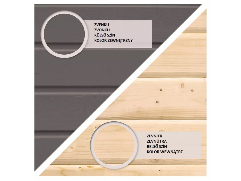 - Profesionální KARIBU FARBSYSTEM - dřevěné profily jsou z vnější strany již ve výrobě opatřeny kvalitní vodoodpudivou barvou, která ochrání dřevo před vlivem UV záření a počasí. Vnitřní strana zůstává vždy v přírodním neošetřeném stavu. KARIBU FARBSYSTÉM sebou nesou jistou počáteční investici, ale v konečném důsledku velkou úsporu času, práce i peněz.