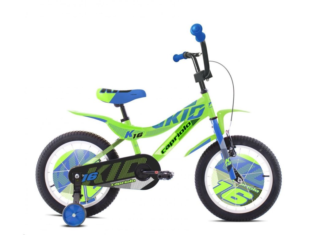 Chlapecké jízdní kolo Capriolo Kid je vhodné pro děti od 3 let, kteří měří nejméně 1 m. Skvěle se hodí na silnici, do terénu i na méně udržované cyklotrasy, takže vaše dítko bezpečně doveze na místo určení. Bohatá výbava kola zahrnuje blatníky či měkké sedlo a o větší bezpečí se stará kryt řetězu, balanční kolečka a dvojice spolehlivých brzd – přední čelisťová a zadní nábojová brzda, která je pro děti při brzdění přirozenější, je téměř nezničitelná a navíc se chlubí bezúdržbovým designem.