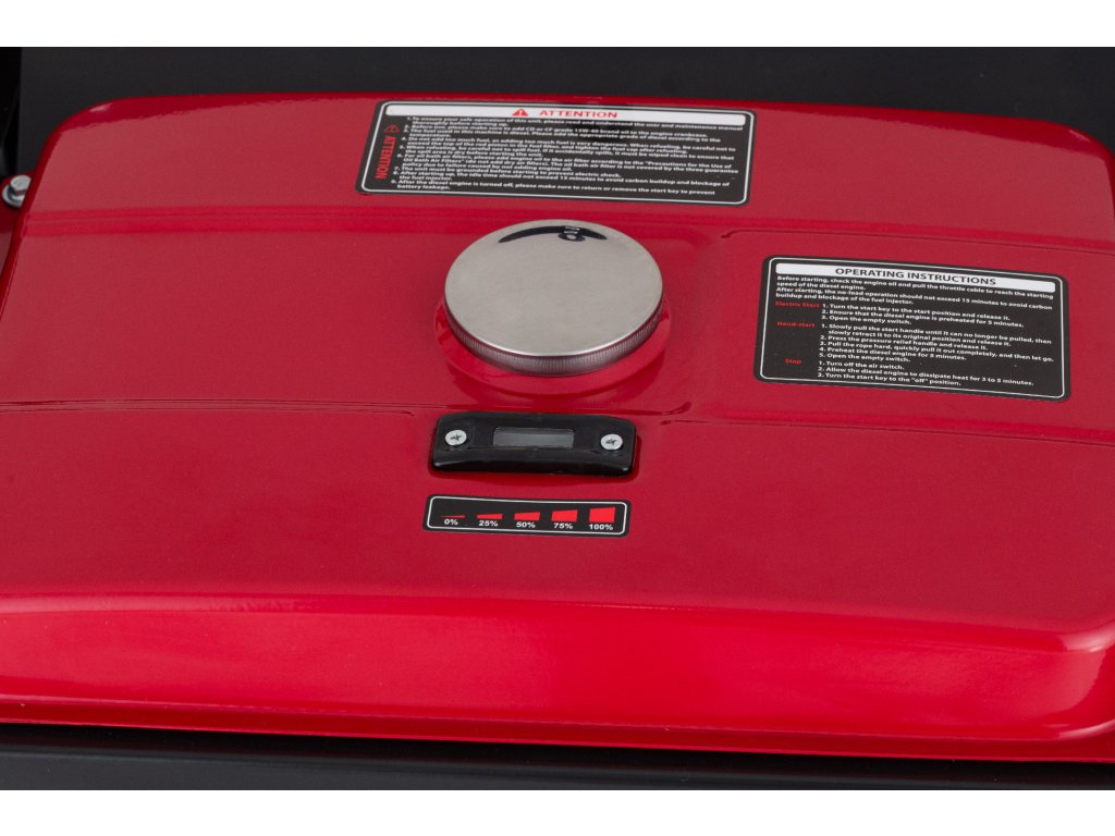 - O pohon se stará dvouválcový, čtyřtaktní, vzduchem chlazený dieselový motor, který je optimalizován pro dlouhodobý provoz a nízkou spotřebu paliva. Elektrické startování s baterií zajišťuje komfortní spuštění, zatímco AVR regulace napětí chrání připojená zařízení před kolísáním napětí.