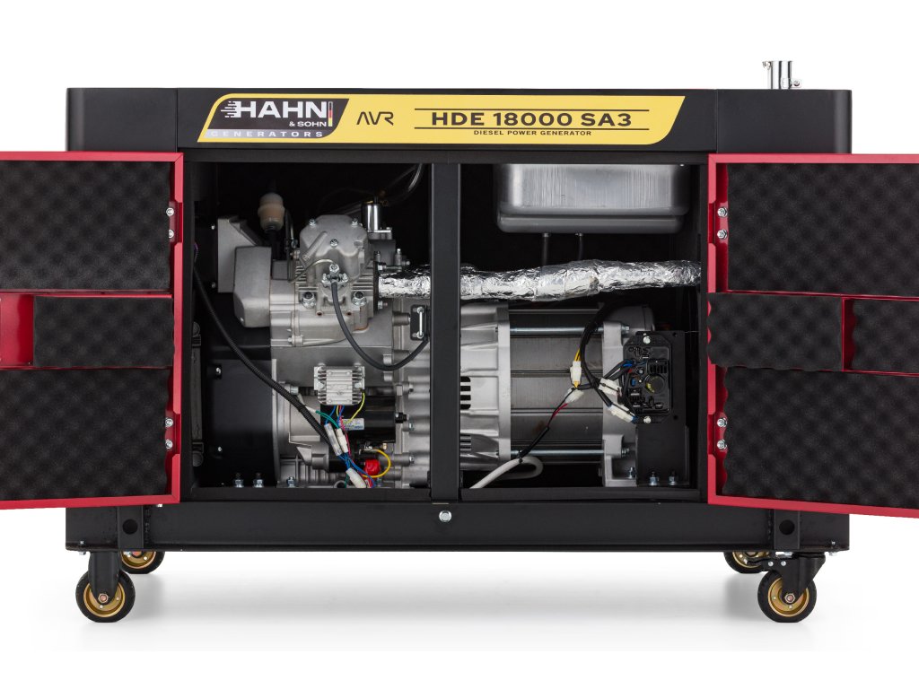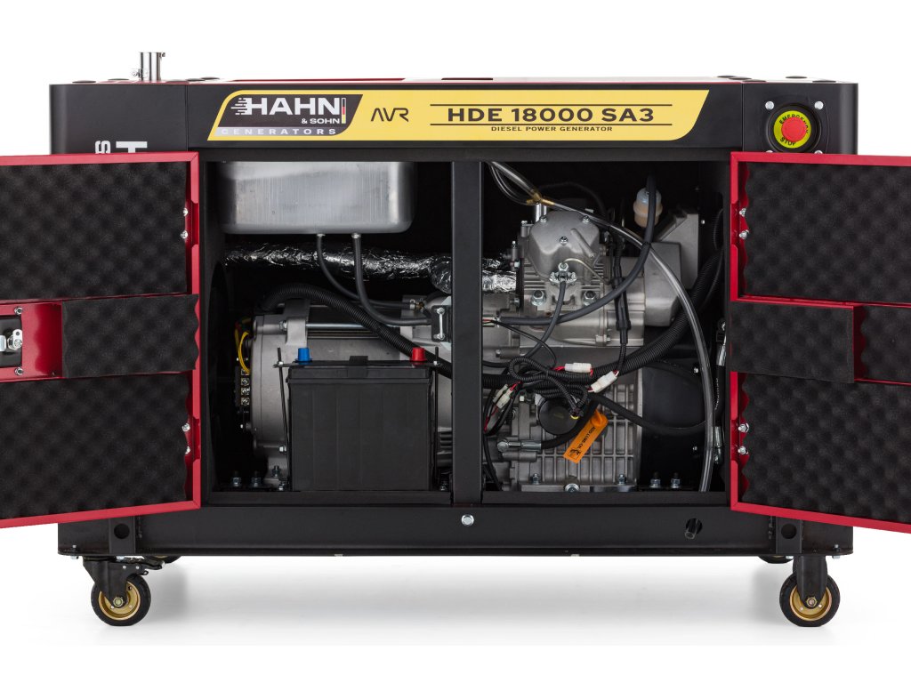 Dieselová elektrocentrála Hahn & Sohn HDE 18000SA3 představuje robustní a výkonný zdroj elektrické energie v odhlučněném (silent) provedení, navržený pro náročné provozy, kde je klíčová vysoká výkonová rezerva, spolehlivost a nízká hlučnost.