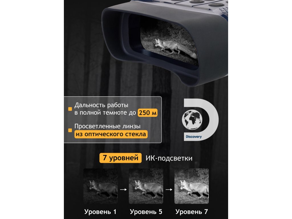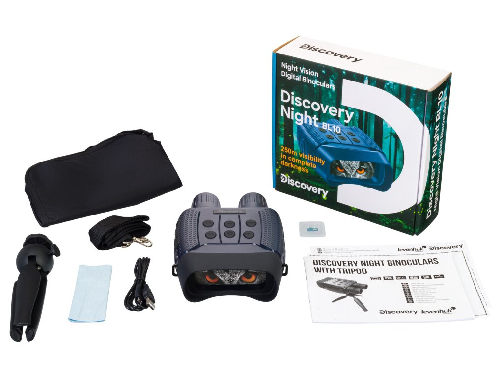 Levenhuk Discovery Night BL10 je binokulární dalekohled s nočním viděním s digitálním zesilovačem obrazu, který je praktický při použití za různých světelných podmínek. Má funkce záznamu fotografií a videa; je vybaven malým stolním stativem pro pohodlnější a stabilizované pozorování v terénu. Tento binokulární dalekohled s nočním viděním bude užitečný při nočním lovu, umožní vám zajistit bezpečnost tábora při trampování a bude vynikající volbou pro průzkum nových území. Levenhuk Discovery Night BL10 je totiž optické zařízení dva v jednom, které lze používat nejen v noci, ale i během dne jako běžný binokulární dalekohled!