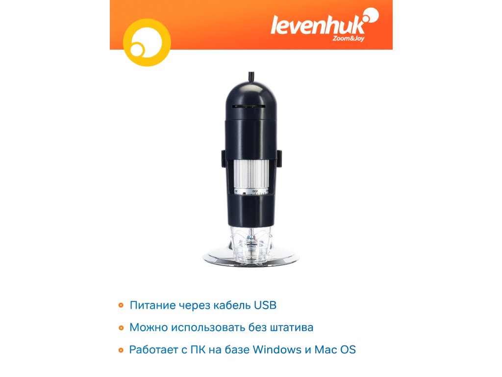 Mikroskop je kompatibilní s operačními systémy Windows a Mac OS. K připojení k PC a k nabíjení mikroskopu se používá kabel USB. Tělo mikroskopu je pogumováno pro pohodlné uchopení. Digitální mikroskop Levenhuk Discovery Artisan 16 je velmi uživatelsky přívětivý. Je malý. Proto na vašem stole nepotřebuje mnoho místa.