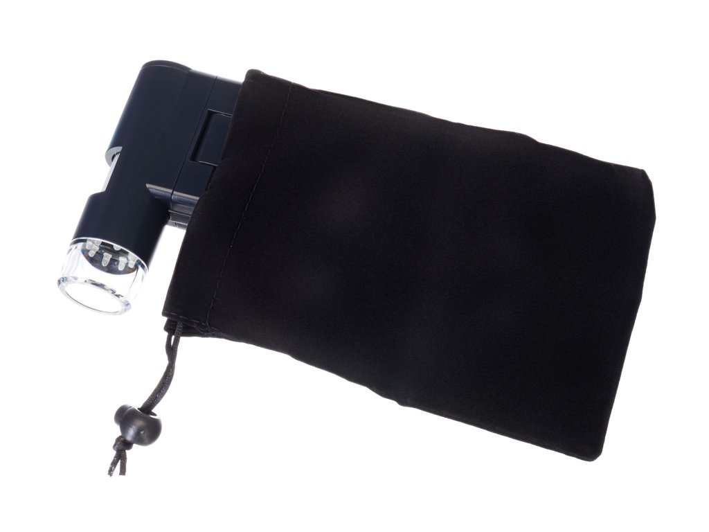 Tělo mikroskopu je pogumované, což zajišťuje pohodlné uchopení. Sada obsahuje malý stojan. Můžete jej použít k dlouhodobému pozorování. Pro snadnou přepravu mikroskopu je součástí sady i pouzdro.