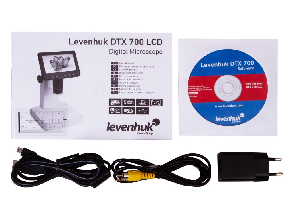 Digitální mikroskop Levenhuk DTX 700 LCD není kompatibilní s externími digitálními fotoaparáty ani kamerami.