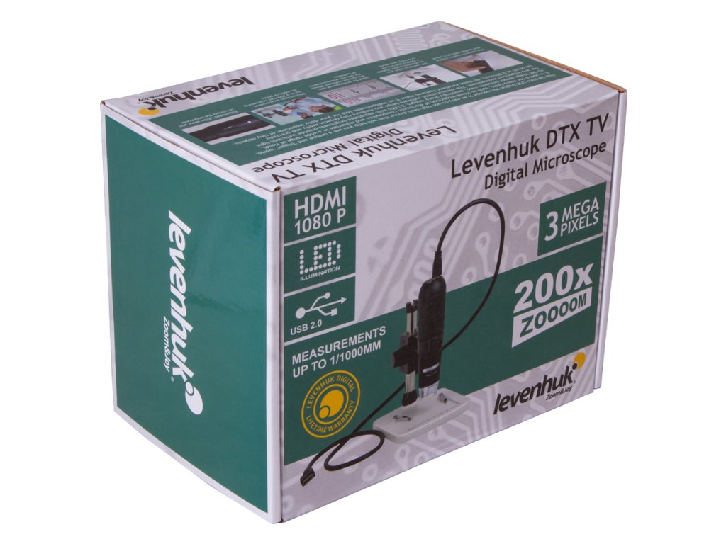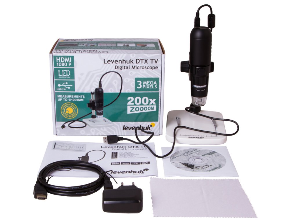 Digitální mikroskop Levenhuk DTX TV lze připojit k počítači nebo televizoru. Stačí, aby měl externí displej konektor HDMI. Tato funkce vám nabízí možnost využít mikroskop pro prezentace, přednášky a školení. Mikroskop vám umožňuje přenést obraz na velkou obrazovku a ukázat důležité kroky při práci s mikroskopickými preparáty svým kolegům nebo přátelům.