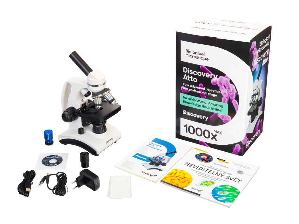 Digitální mikroskop Levenhuk Discovery Atto Polar je biologický světelný mikroskop s 5 MP fotoaparátem. Lze jej používat k pozorování mikrobiálního světa a také k uložení obrázků preparátů v obrazovém a video formátu. Mikroskop je dodáván s rozsahem zvětšení 40x až 1000x, což umožňuje podrobné studium bez ohledu na úroveň transparentnosti, dokonce při provádění experimentů metodou ponořením preparátu do olejové lázně. Součástí sady je zajímavá publikace o mikrobiálním světě.