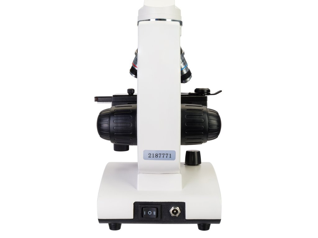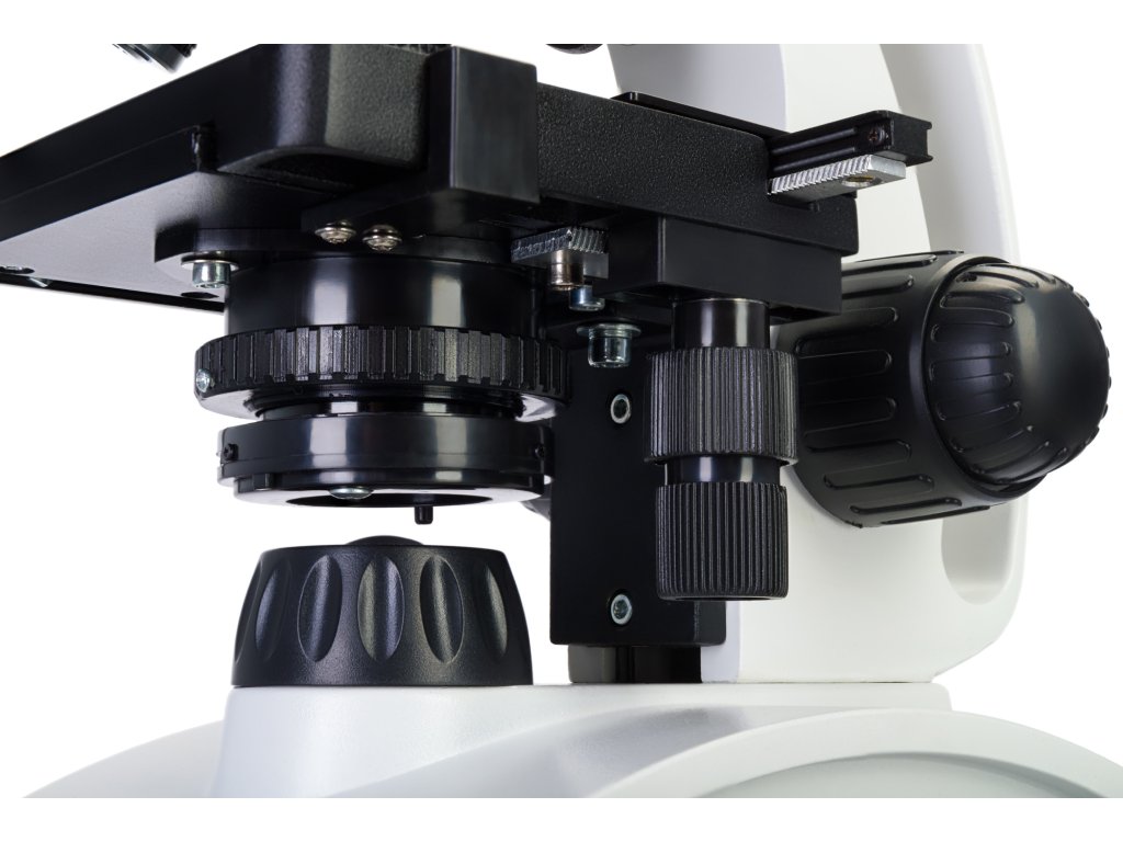 Stolek mikroskopu je doplněn mechanickým měřítkem pro optimální využití technik přípravy mikropreparátů. Osvětlovací systém se skládá ze dvou LED světel s proměnnou intenzitou. Horní osvětlení je nad stolkem a spodní osvětlení pod stolkem. Obě osvětlení lze napájet z baterií (nejsou součástí balení) nebo ze sítě prostřednictvím AC adaptéru (součást sady). Mikroskop je dodáván s Abbeho kondenzorem s irisovou clonou a držákem filtru.