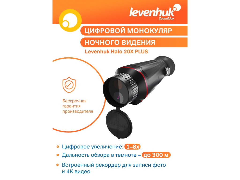 Levenhuk Halo 20X PLUS – digitální monokulární dalekohled pro denní i noční pozorování. Tento miniaturní přístroj má řadu nastavení a poskytne svému majiteli dostatek příležitostí k práci jak za denního světla, tak i v úplné tmě.