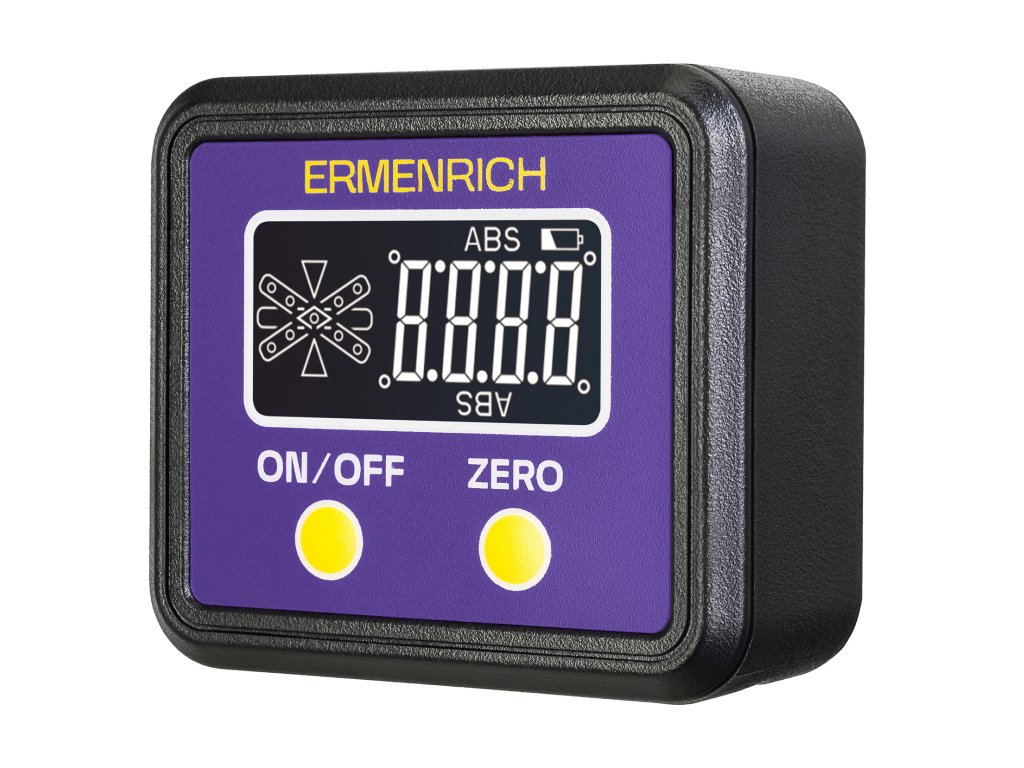 Digitální vodováha Ermenrich Verk LQ20 – univerzální přístroj určený pro nivelační práce na stavbách, při opravách a dokončovacích pracích, na montážích a ve výrobě. Tato vodováha dokáže měřit sklon ve stupních ve čtyřech směrech. Vysoká přesnost je jednou z hlavních předností tohoto přístroje – jeho citlivost je 0,1/0,2 stupně (v závislosti na ostrosti úhlu). Přesná měření se zobrazují na vestavěném LCD displeji.