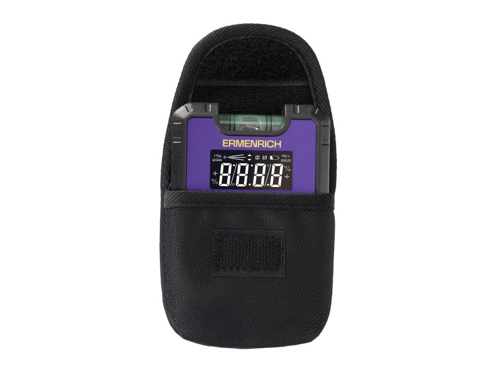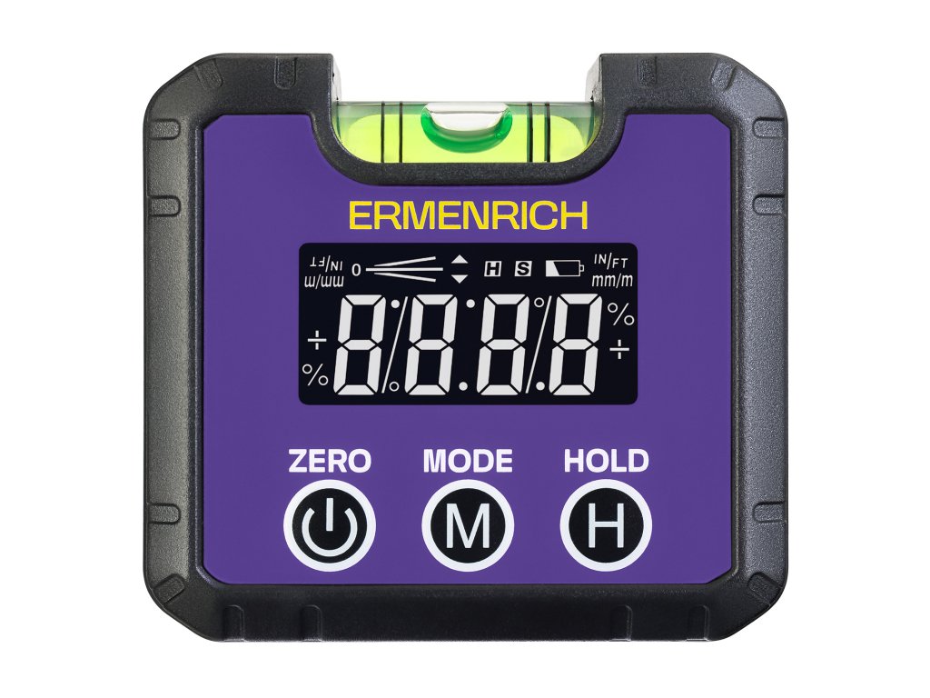 Ermenrich Verk LQ30 je digitální vodováha, která se stane skvělým nástrojem pro každého stavitele, montéra, mistra dokončovacích prací, obsluhu výrobního stroje apod. Jistě se bude hodit i v domácnosti při opravách. Přístroj měří úhly sklonu v rozsahu 360° (4x90°) a na LCD displeji zobrazuje stupeň sklonu a jeho směr. Údaje jsou uváděny ve stupních a dalších jednotkách měření, které si můžete zvolit. Přístroj měří úhel sklonu a pomáhá co nejefektivněji provádět nivelaci objektu. Vestavěná bublinková vodováha usnadňuje umístění přístroje na libovolném povrchu.
