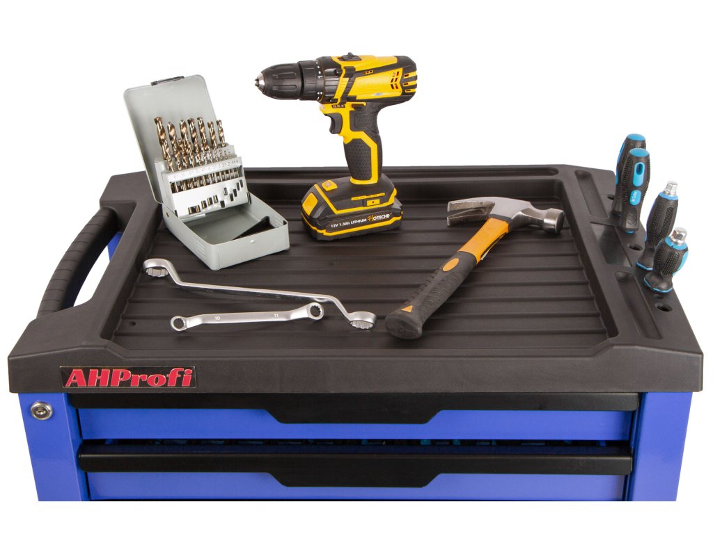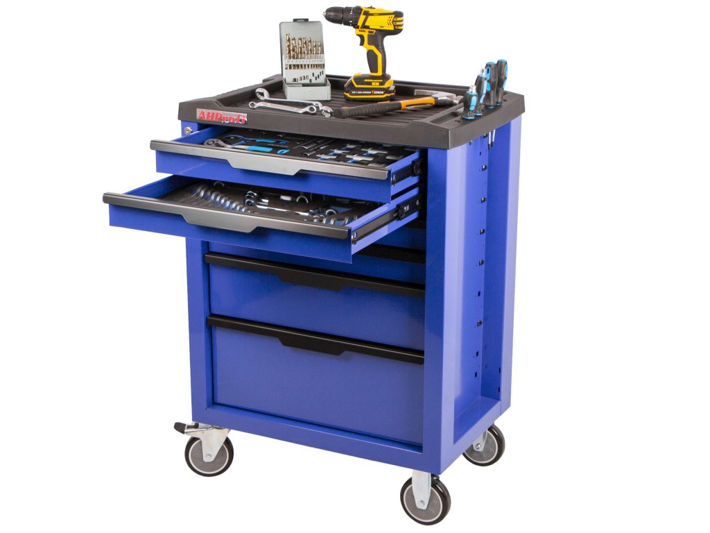 Vozík má 6 šuplíků a 4 z nich jsou vybaveny výplněmi s nejpoužívanějším nářadím.