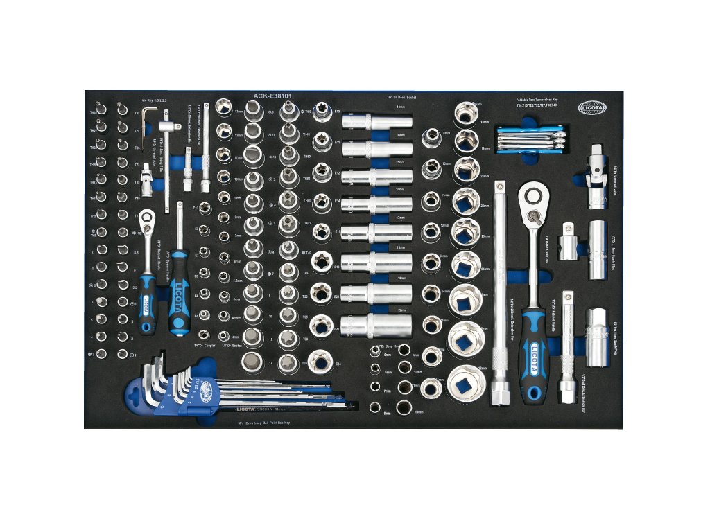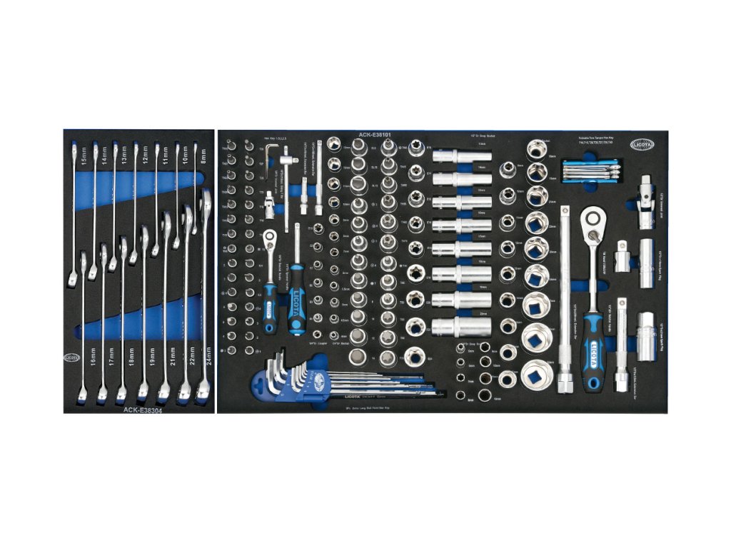 Horní dva šuplíky obsahují výplně s nejpoužívanějším nářadím. Nářadí je uloženo v pěnových výplních ve kterých skvěle drží, na rozdíl od plastové výplně.